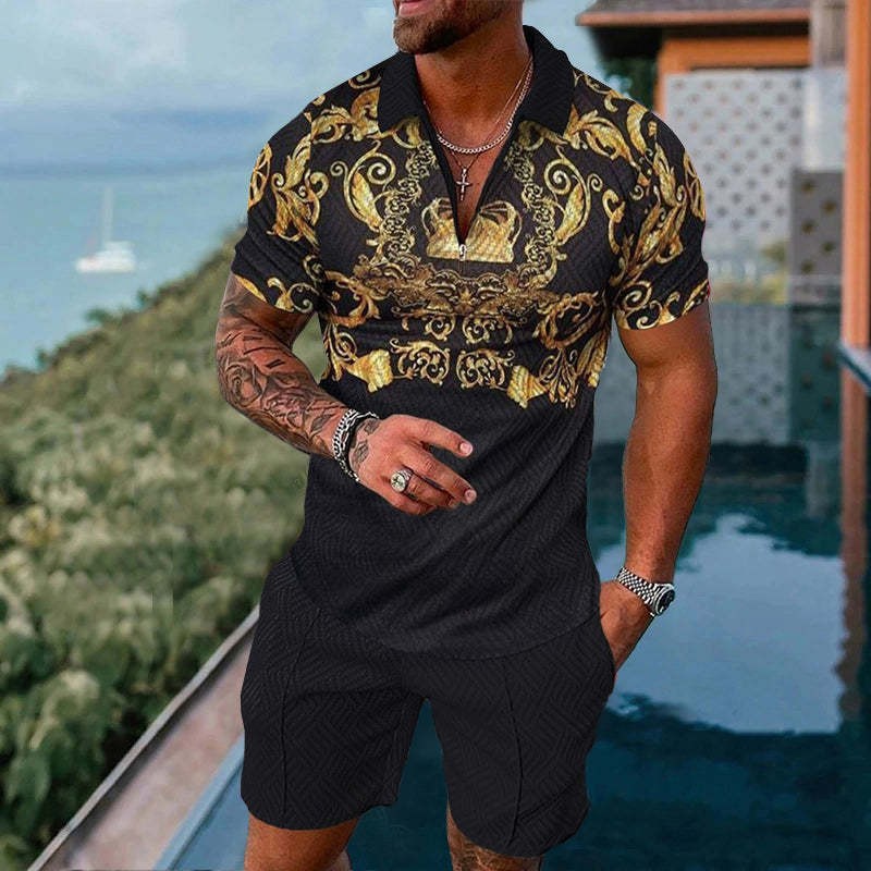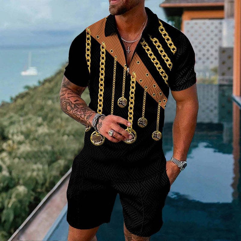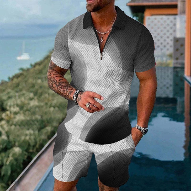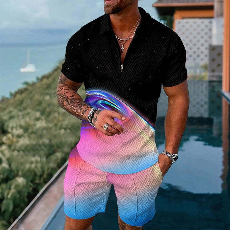 Трансграничная европейская и американская мужская новая независимая станция поставляет повседневную рубашку-поло контрастного цвета с застежкой-молнией и лацканами, костюм с короткими рукавами, дропшиппинг