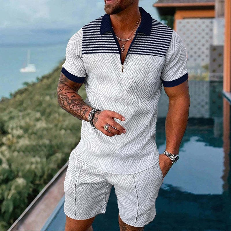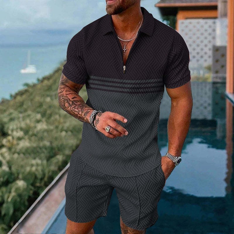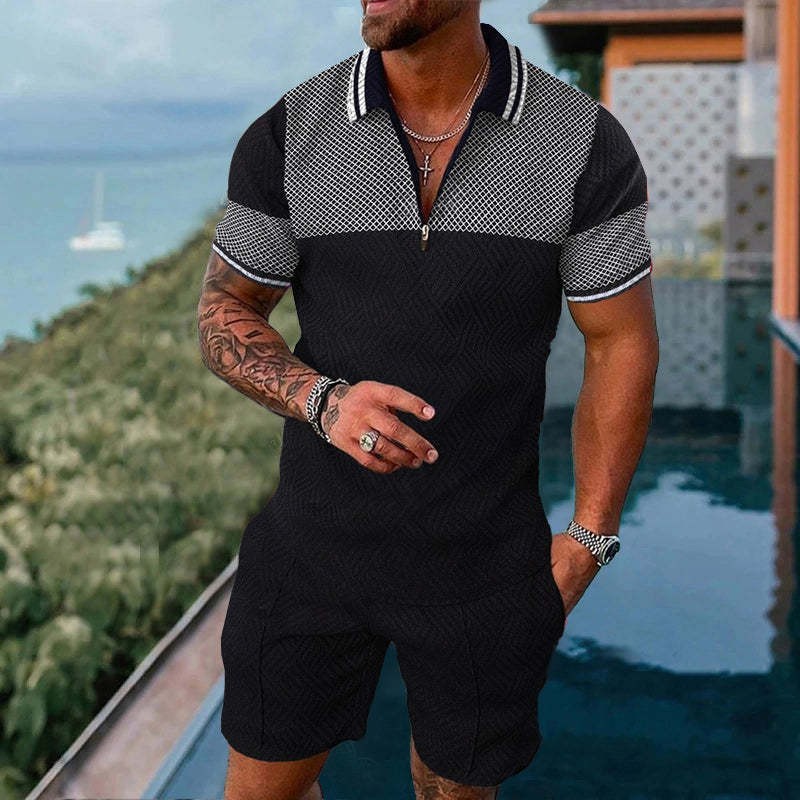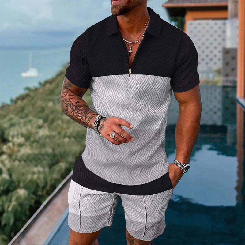 Главная страница > Трансграничная европейская и американская мужская новая независимая станция поставляет повседневную рубашку-поло контрастного цвета с застежкой-молнией и лацканами, костюм с короткими рукавами, дропшиппинг