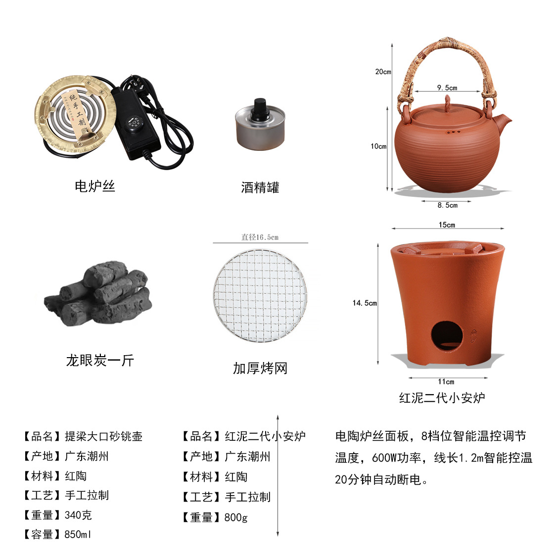 Набор из красной глиняной печи с большой горловиной (красная глиняная электрическая глиняная плита)