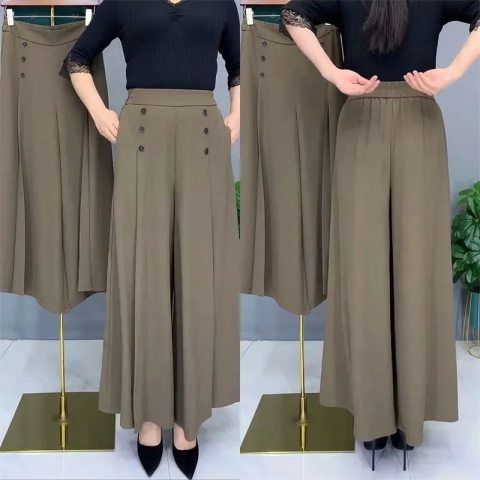 Главная страница > Модные универсальные драпированные широкие брюки-юбки с высокой талией, элегантные женские брюки для похудения, лето 2025, крутые свободные свободные брюки с широкими штанинами
