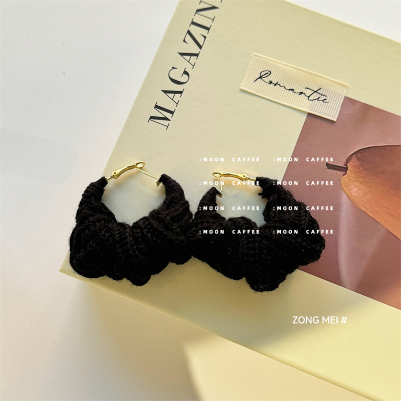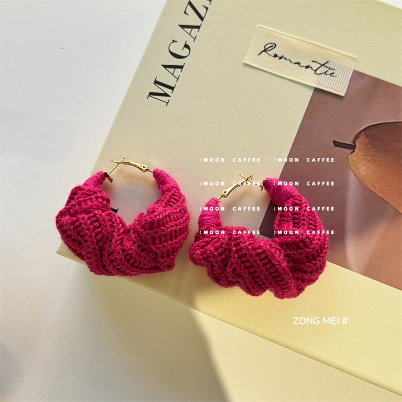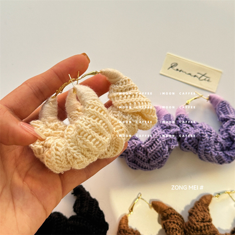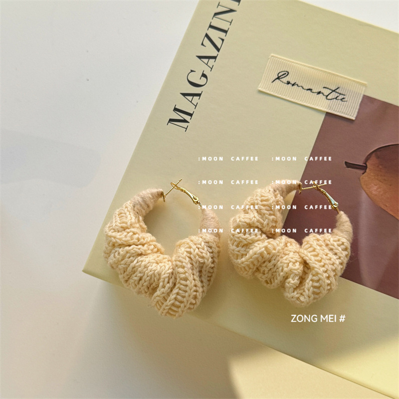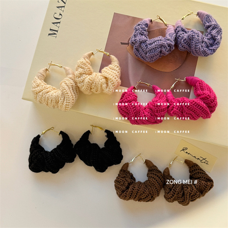 Главная страница > Толстый Круглый Круг ~ преувеличенный дизайн Индивидуальный Ретро Плюшевые Вязаные Шерстяные осенне-зимние серьги-кольца Серебряная игла
