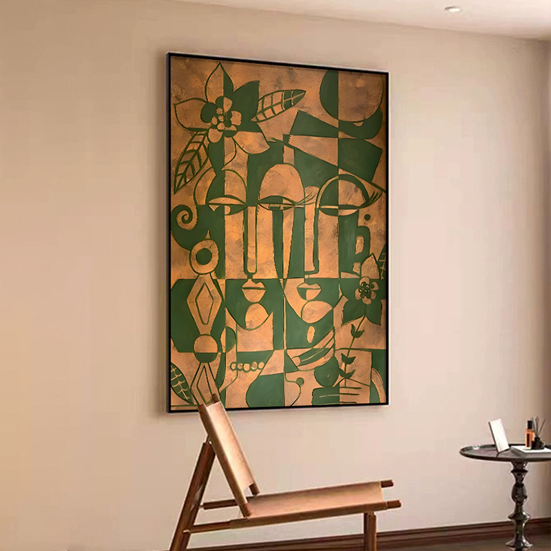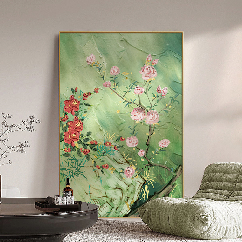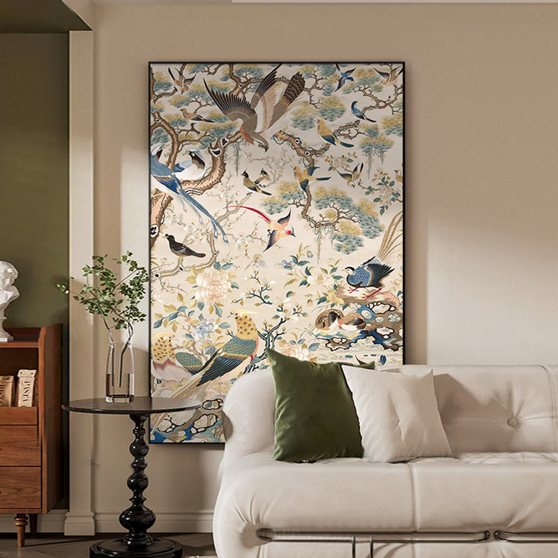 Главная страница > Ретро Наньян Срединный стиль гостиная декоративная роспись сливовый диван фон стены фреска зеленая линия крыльцо висит роспись