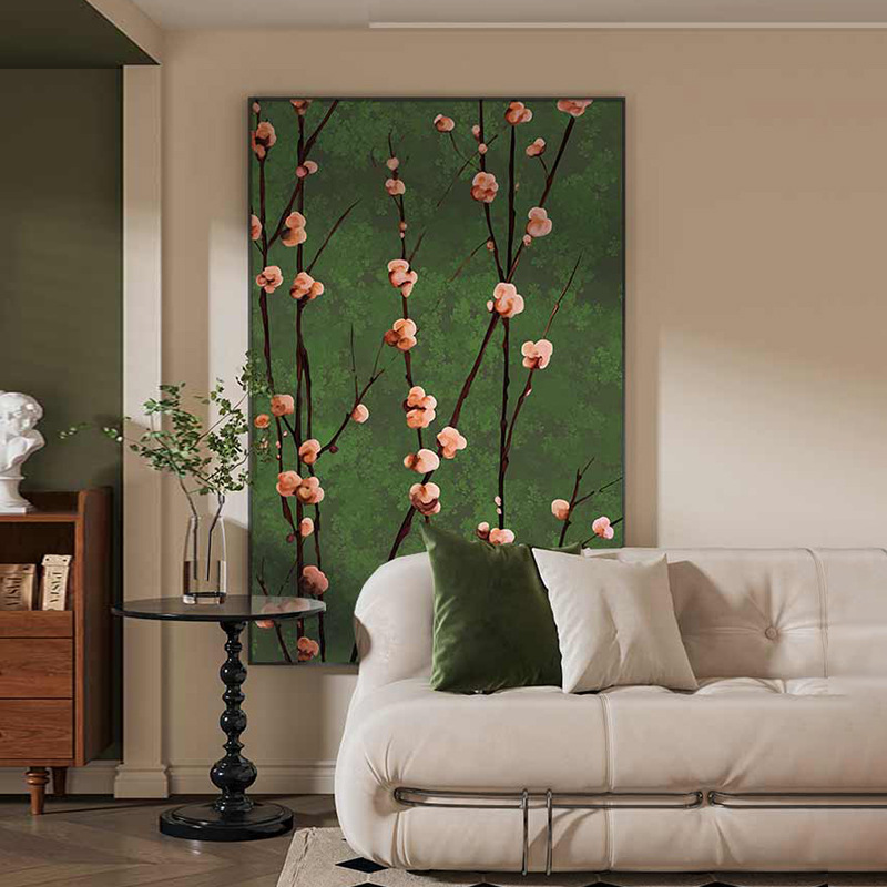 Ретро Наньян Срединный стиль гостиная декоративная роспись сливовый диван фон стены фреска зеленая линия крыльцо висит роспись