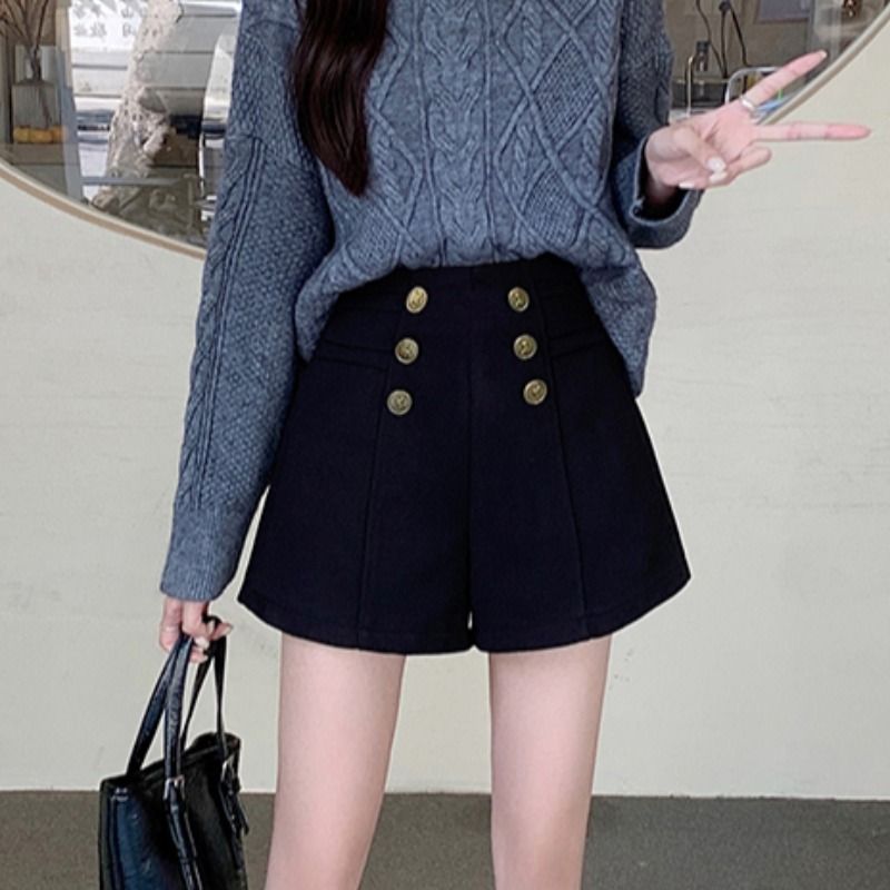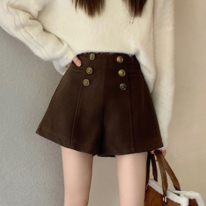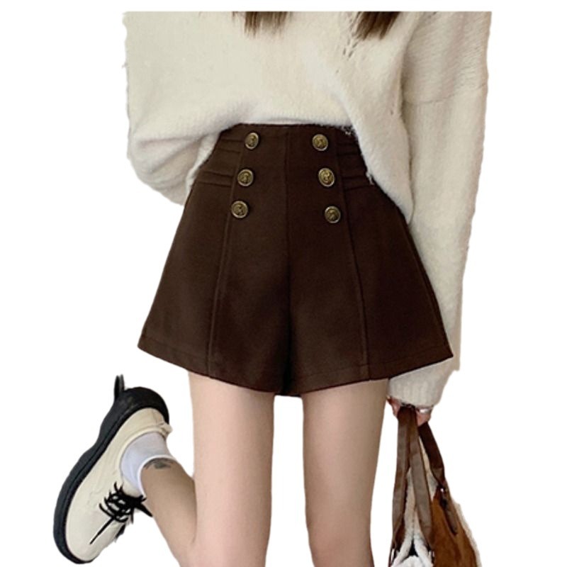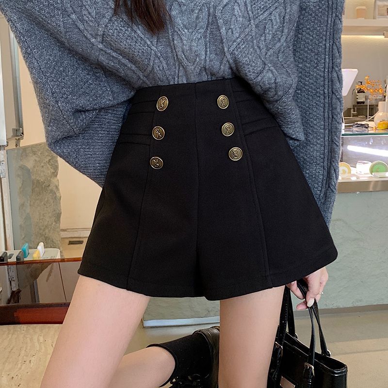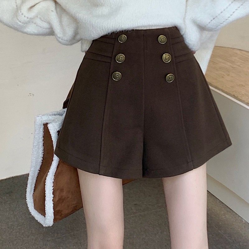 Высокая талия слово повседневные шерстяные шорты женские осенние и зимние платья 2023 новые зимние новые тонкие и дикие широкие ноги