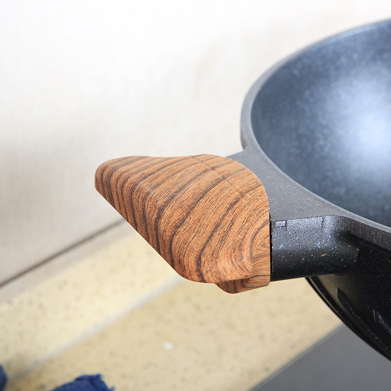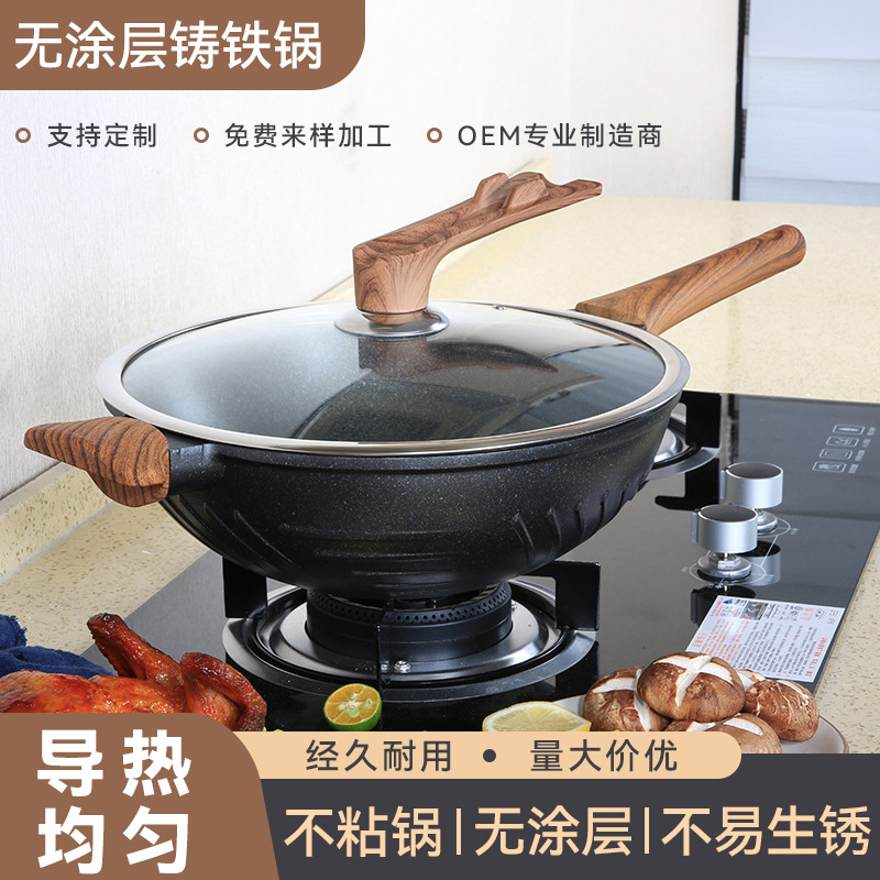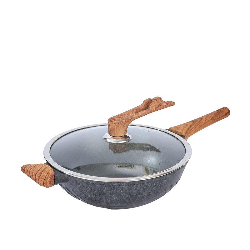Главная страница > Прямые поставки с фабрики Maifan Stone wok антипригарная сковорода с плоским дном Бытовая без ламп черная ручка из цельного дерева