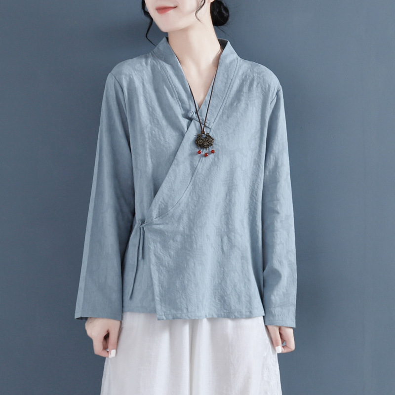 Главная страница > Настоящий снимок литературной косой планки на пуговицах, рубашка для женщин, весна 2025 года, китайский стиль, династия Хань, хлопок и лен, топ в стиле ретро, дзен, чайный костюм