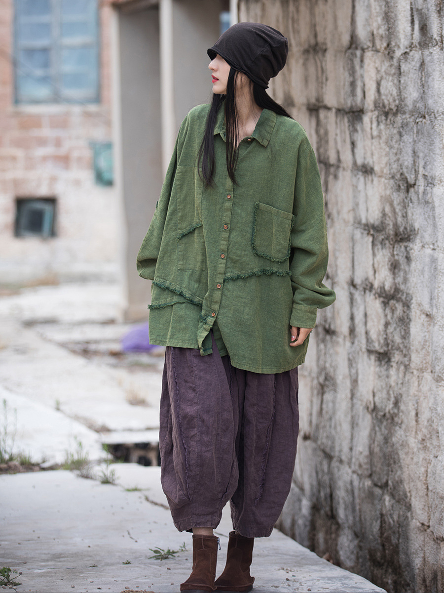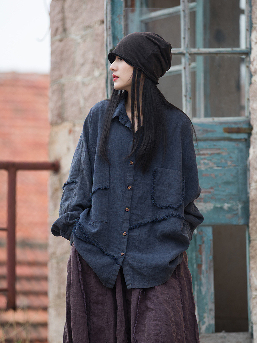 Главная страница > Новая женская винтажная свободная рубашка из хлопка и льна, с эффектом песочной стирки, начёсом, в стиле пэчворк, асимметричного кроя, больших размеров, для зимы