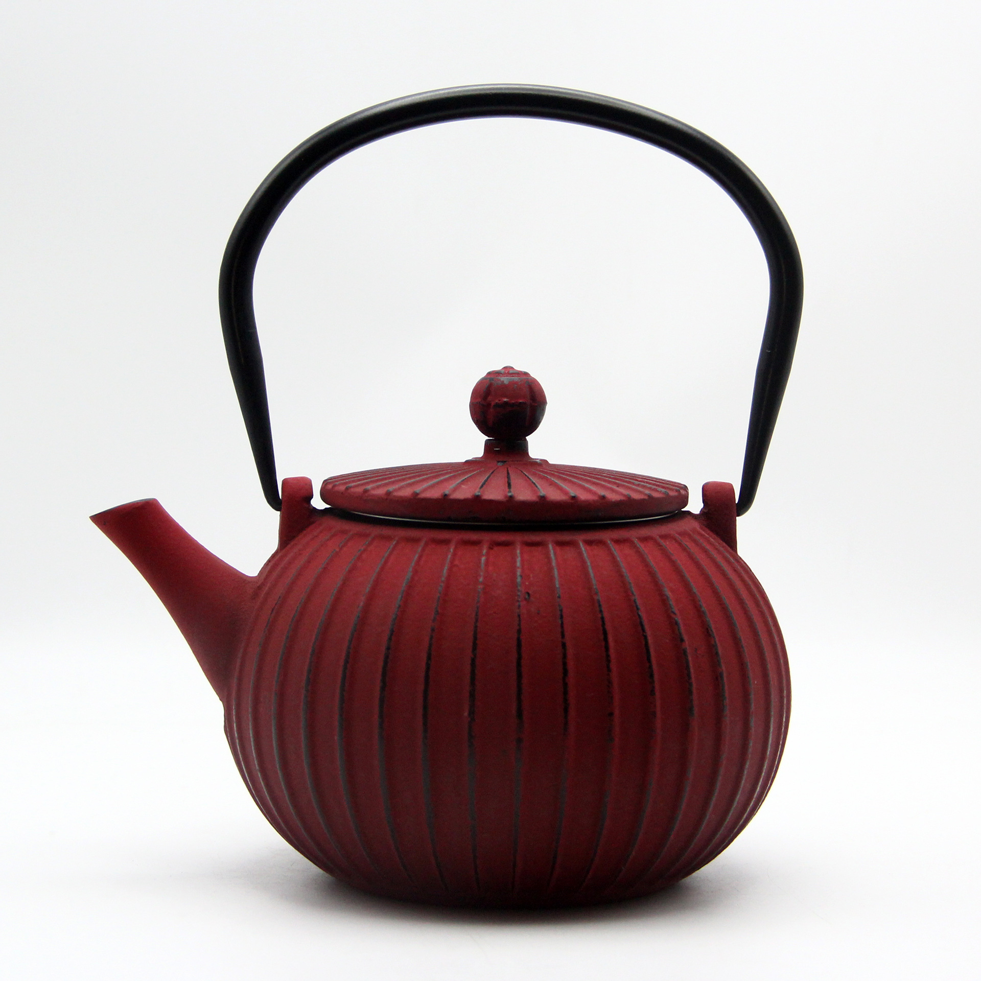 Чугунный чайник в западном стиле с простым вертикальным полосатым узором, разноцветный, оптом от производителя, для кипячения воды, приготовления чая и поддержания здоровья.