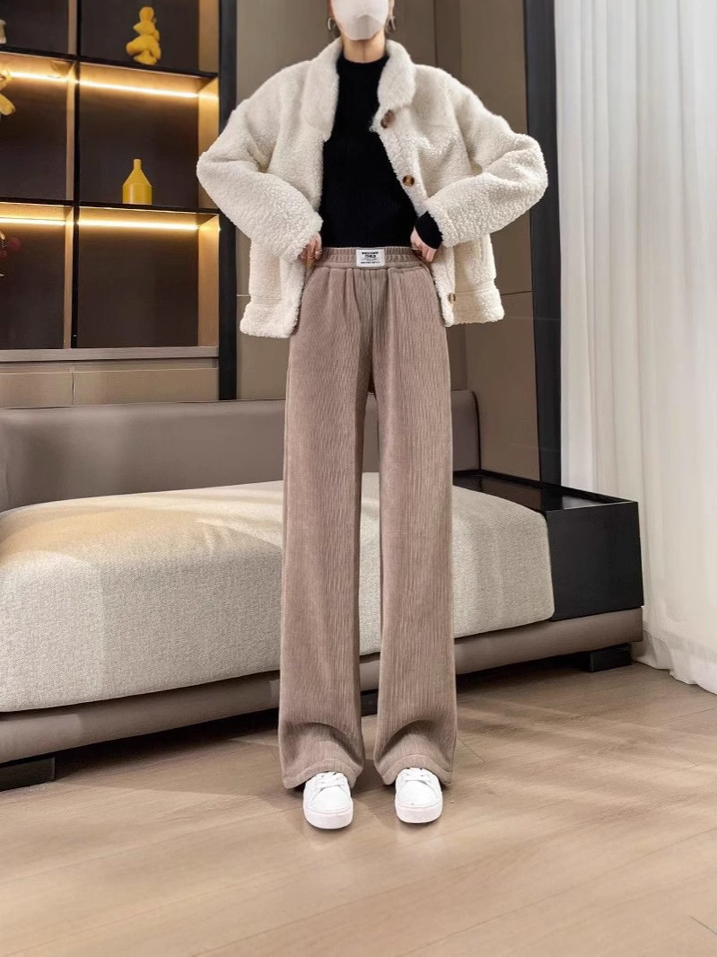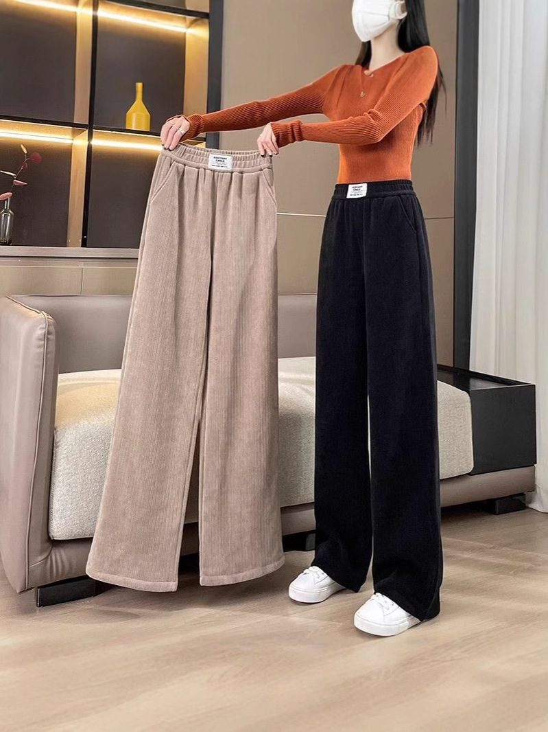 Главная страница > Повседневные брюки в оригинальном стиле для женщин, новый осенне-зимний стиль, бархатные и утолщенные, с высокой талией, прямые и драпированные широкие брюки оптом.