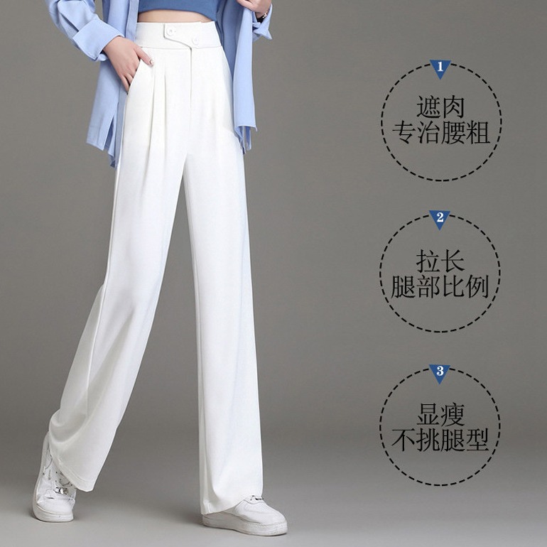 Модные широкие брюки для женщин, весна-осень, с высокой талией, увеличивающие рост, стройнящие, струящиеся, прямые, в пол, стильные, удлиняющие ноги.