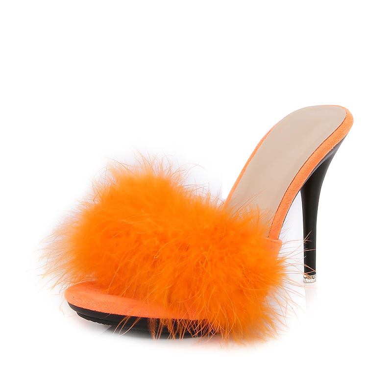 Главная страница > 2025 Летние новые тапочки 35-43 Большой размер женские тапочки темпераментные волосатые сандалии на высоком каблуке многоцветный