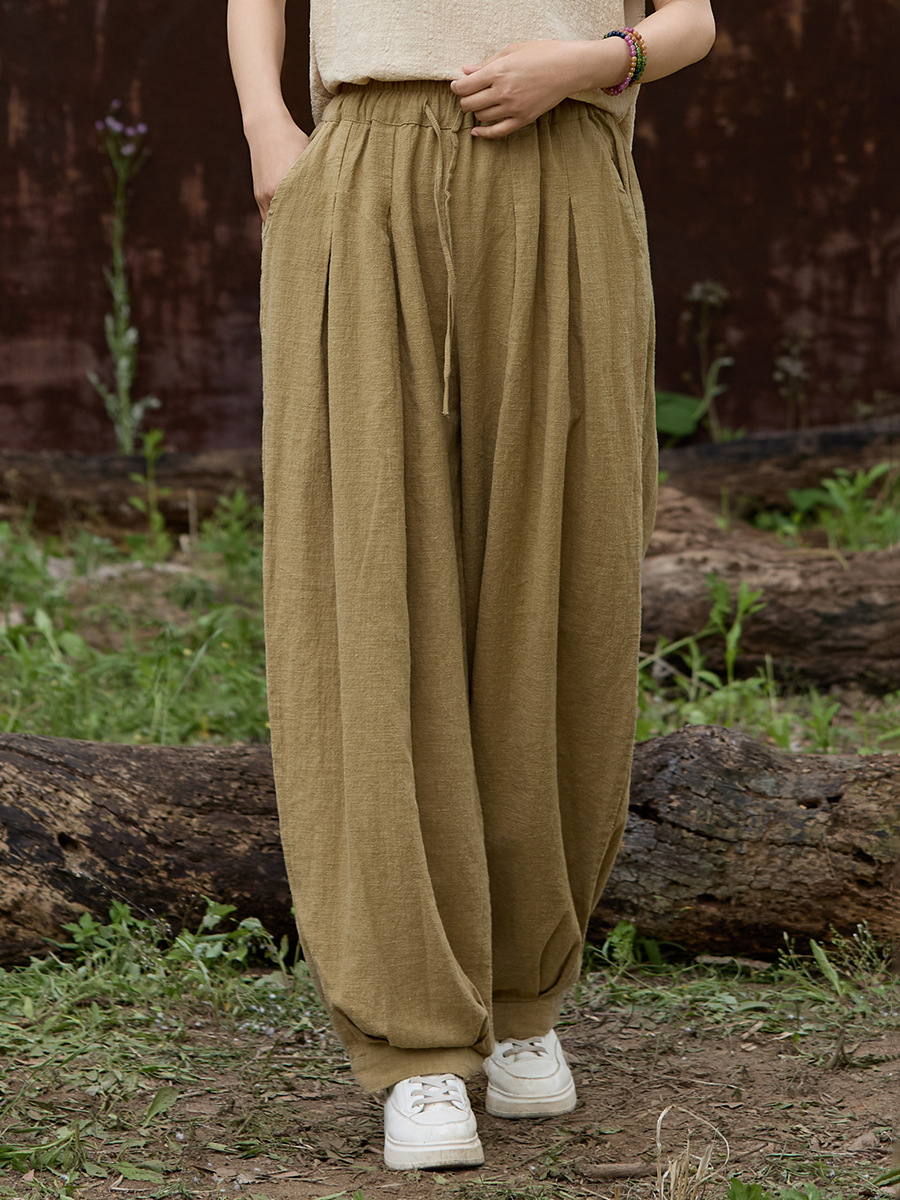 Главная страница > Новые женские брюки из хлопка и льна на осень/зиму, из рафии, с эффектом сан-вош, длинные, с эластичным поясом на завязках, универсальные, повседневные, фасон «фонарь»