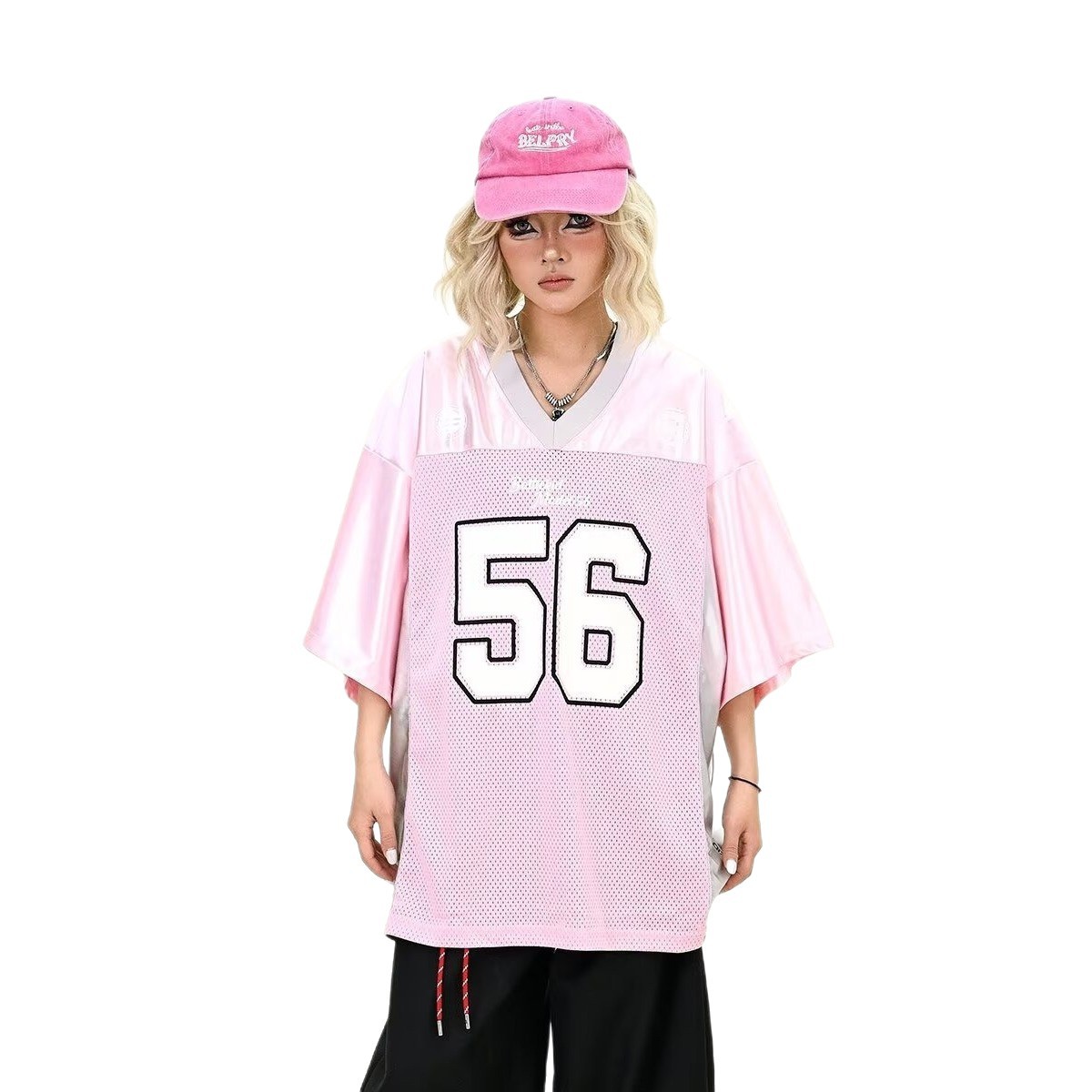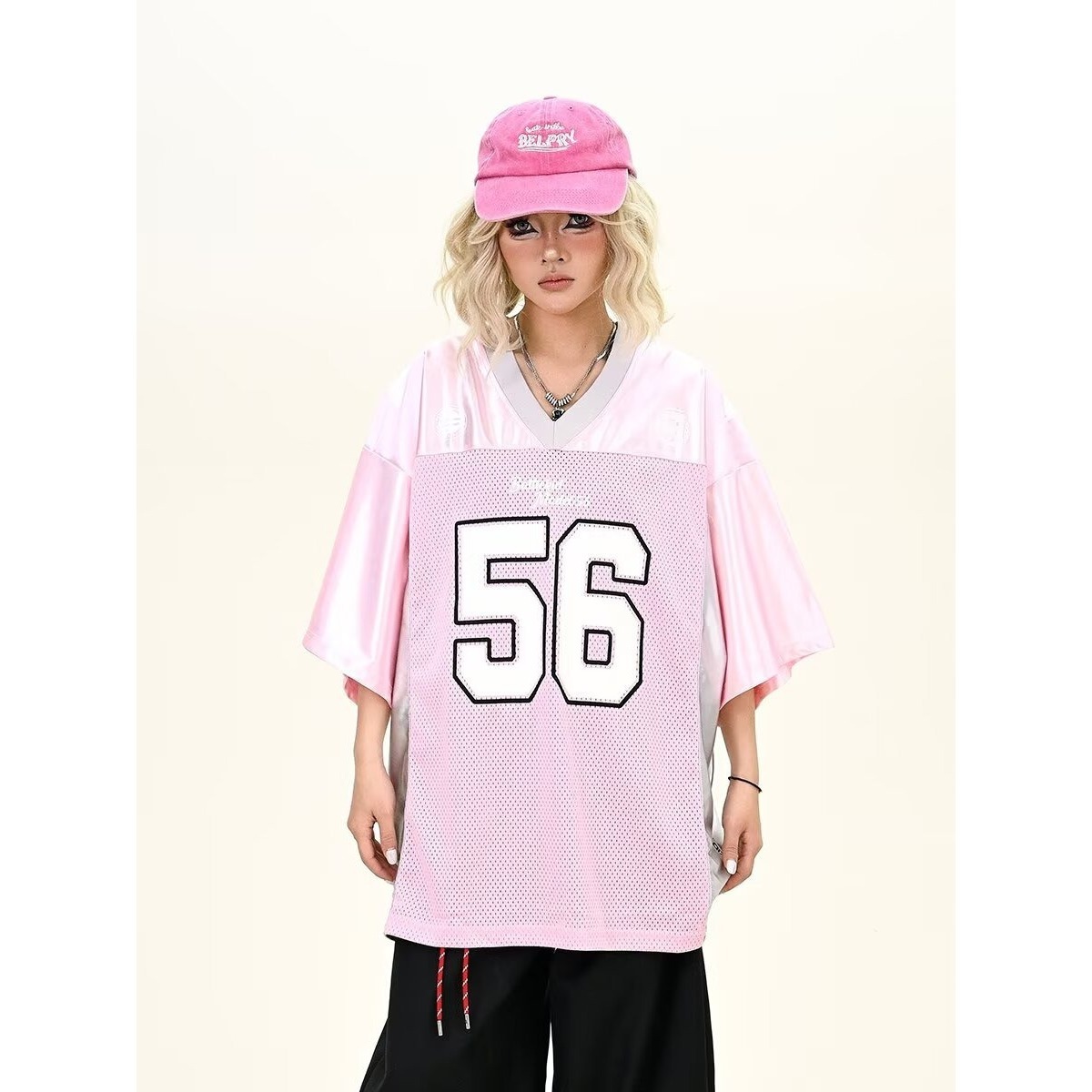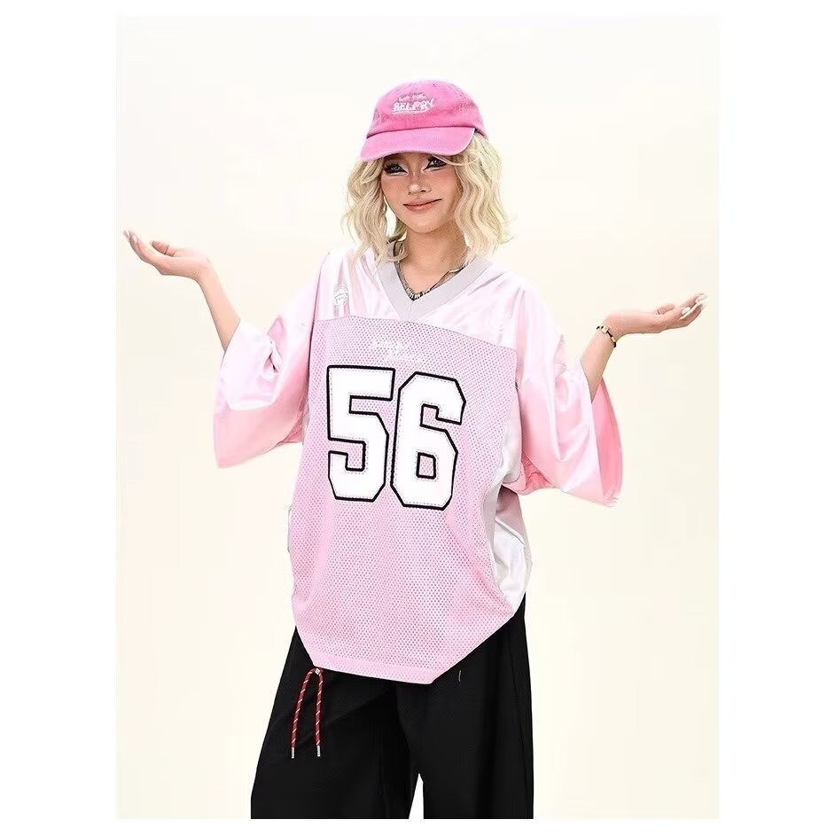 Главная страница > Мужская спортивная футболка с короткими рукавами и V-образным вырезом в стиле ретро в стиле ретро, европейский и американский бренд уличной моды, свободный крой для пар, экспорт.