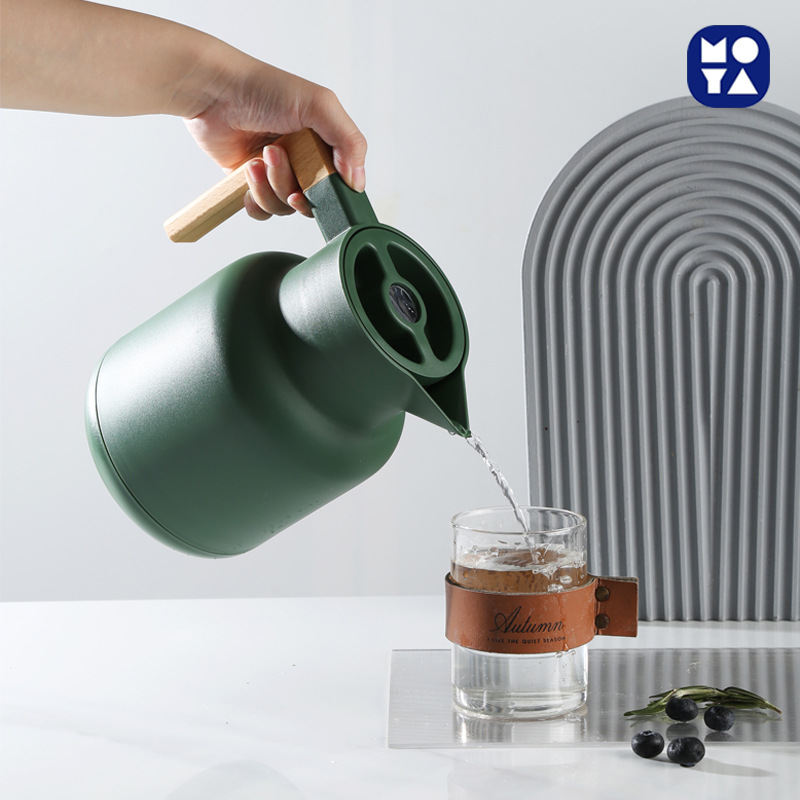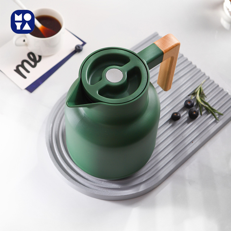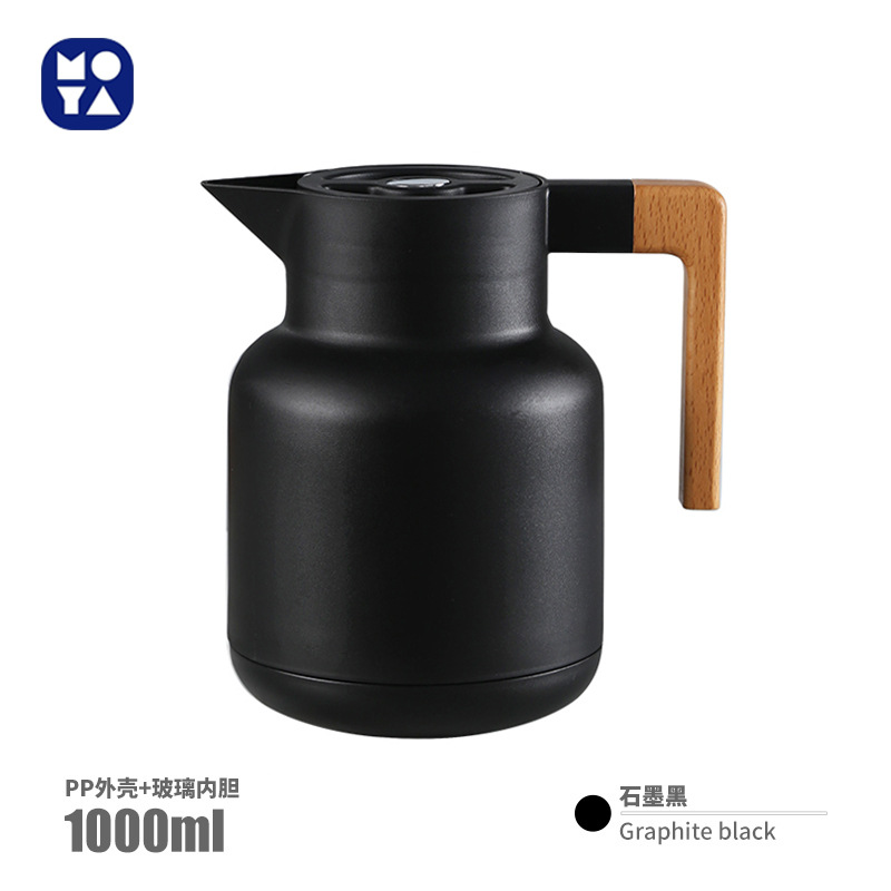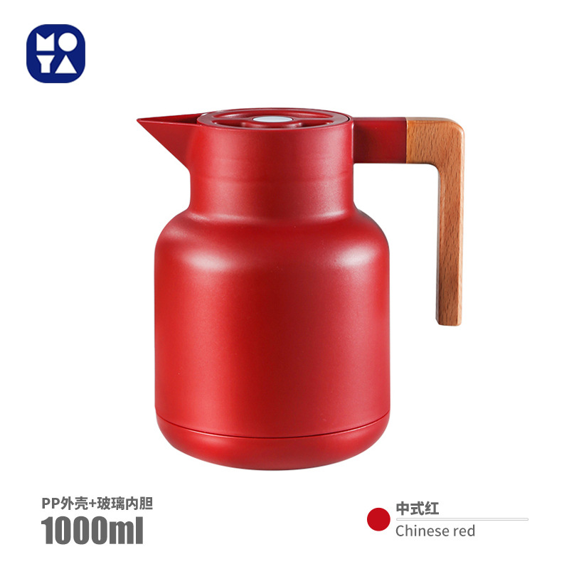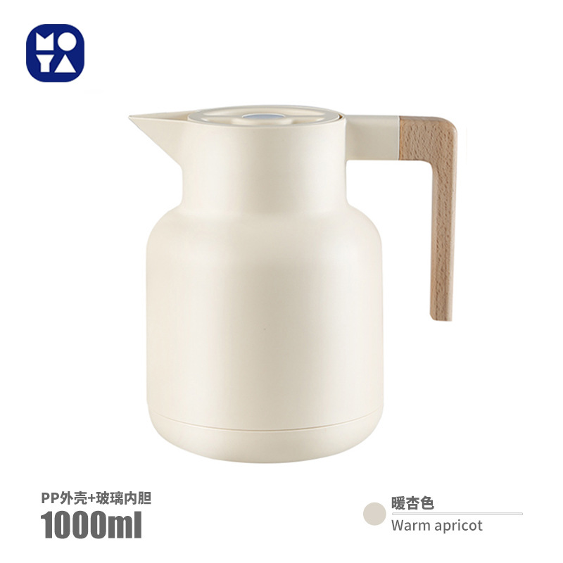 Японский стиль, полипропиленовый изолированный стеклянный термос, чайник для домашнего использования, 1 л, бутылка для горячей воды, кофейник с деревянной ручкой, чайник для заваривания чая, подарок