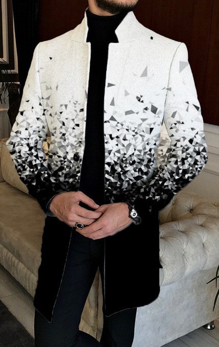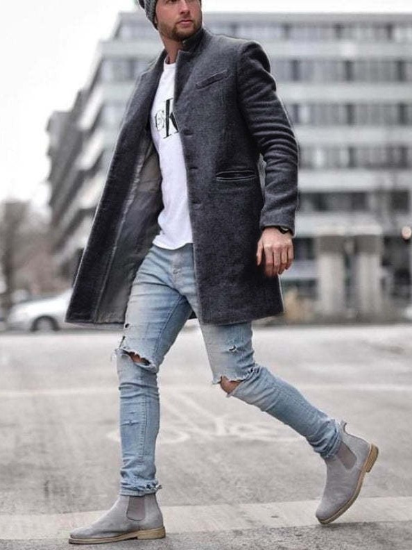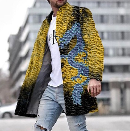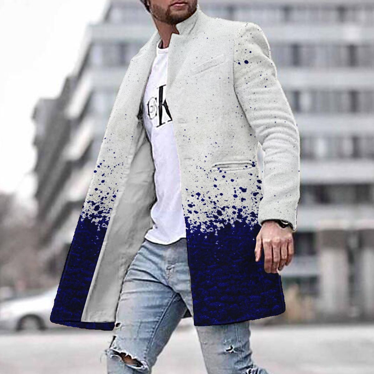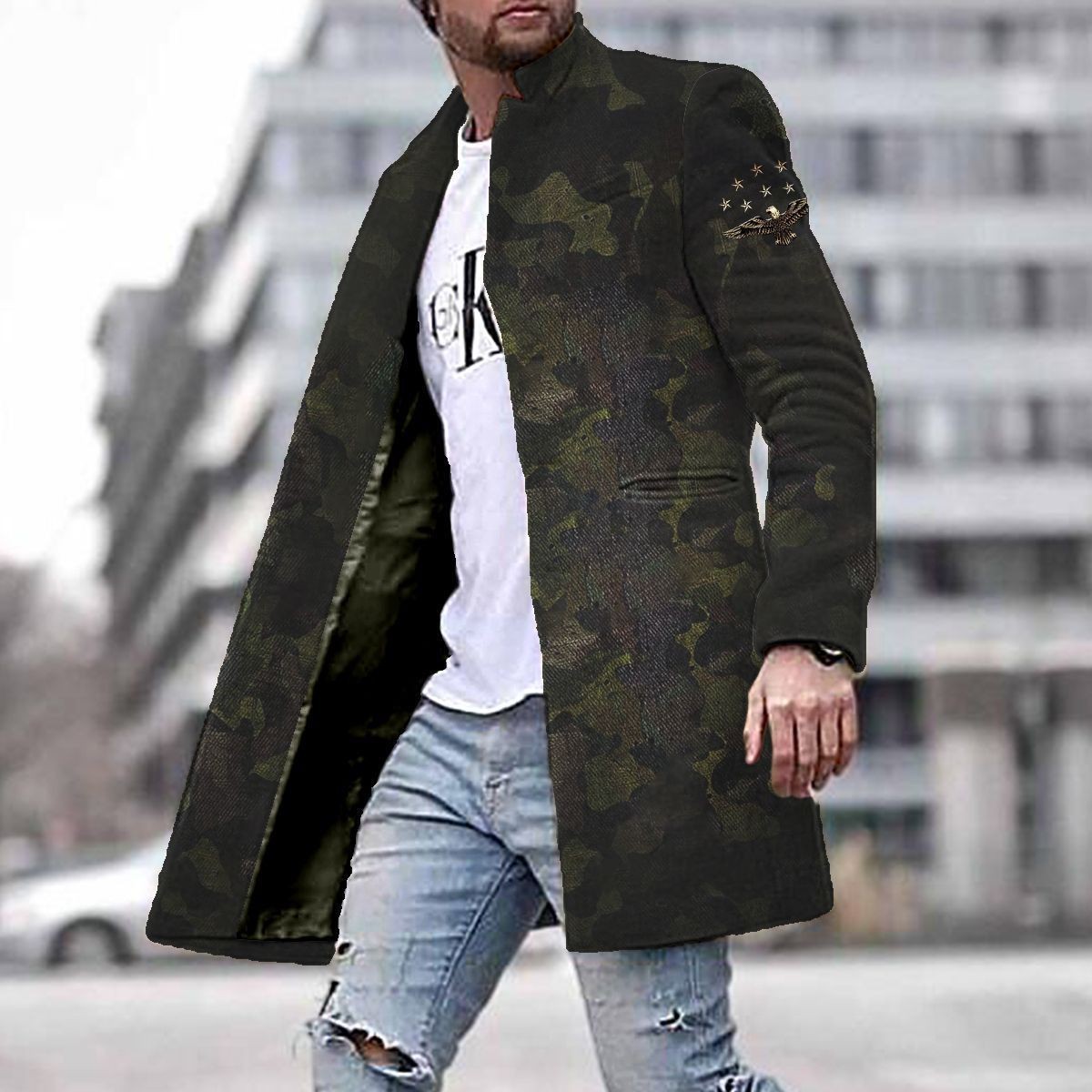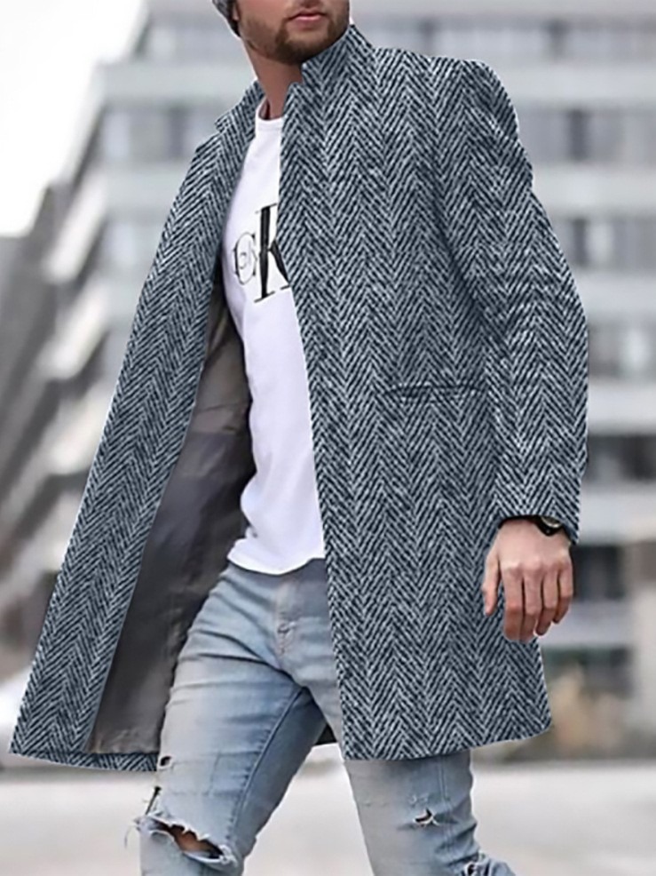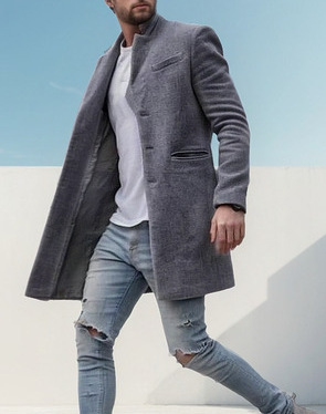Главная страница > Мужское шерстяное пальто средней длины в уличном стиле с воротником-стойкой и карманами, новинка осени 2024 года