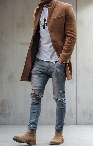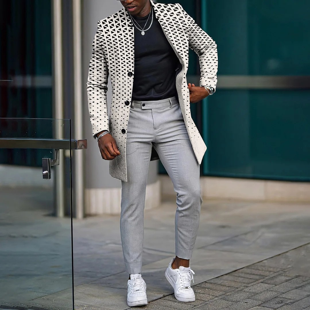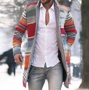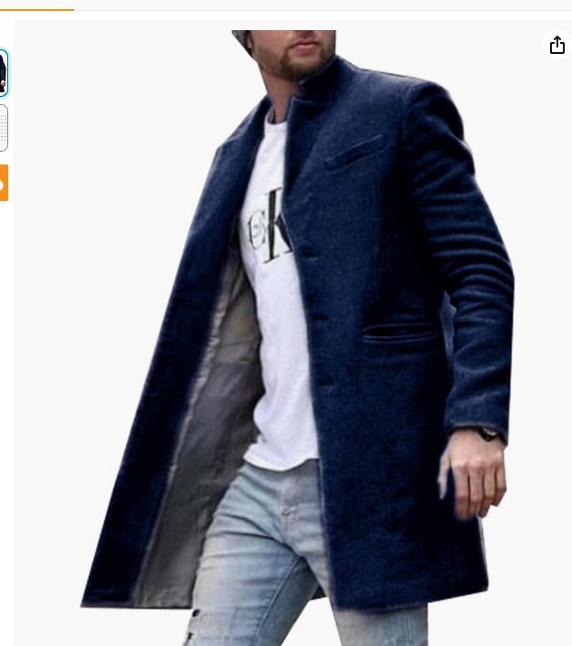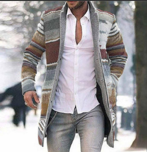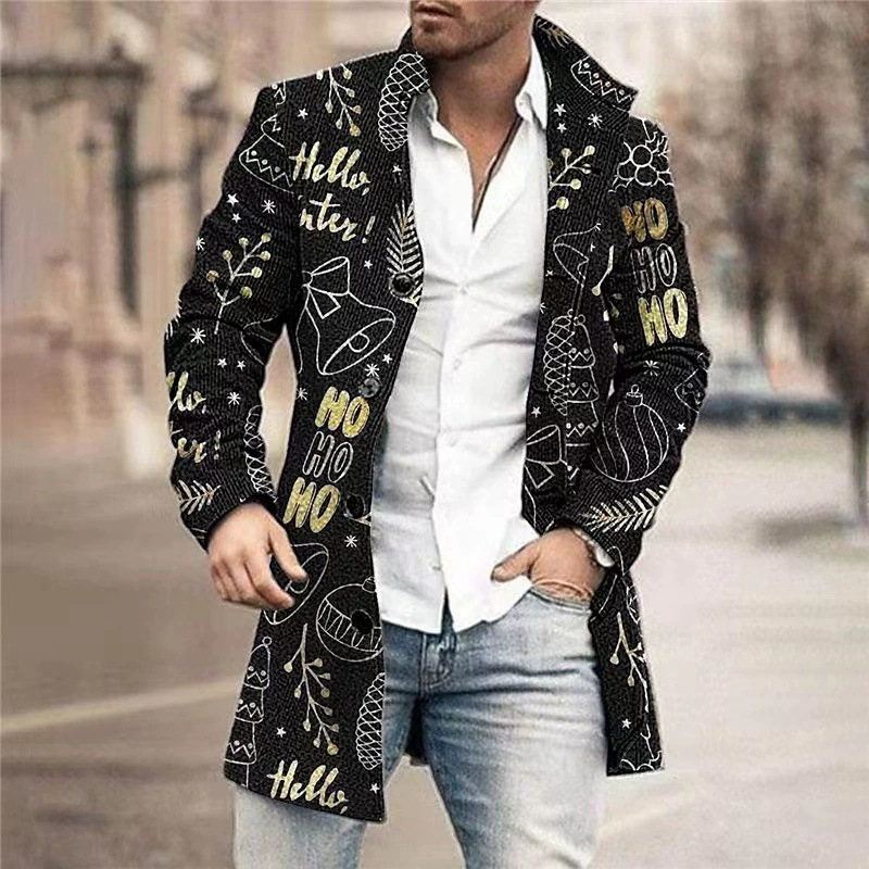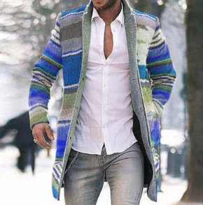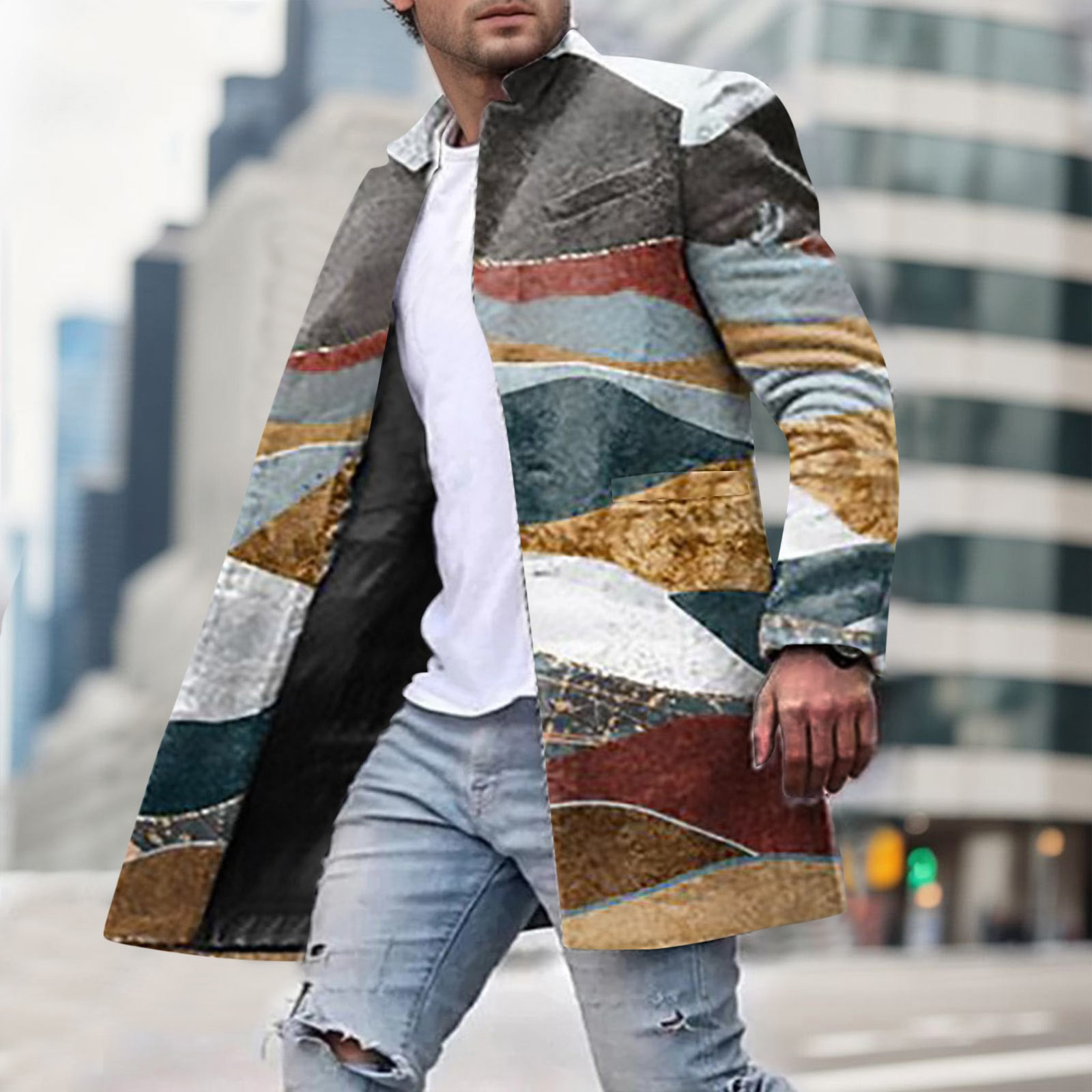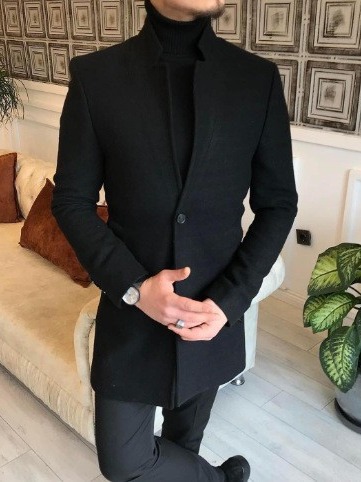 Главная страница > Мужское шерстяное пальто средней длины в уличном стиле с воротником-стойкой и карманами, новинка осени 2024 года