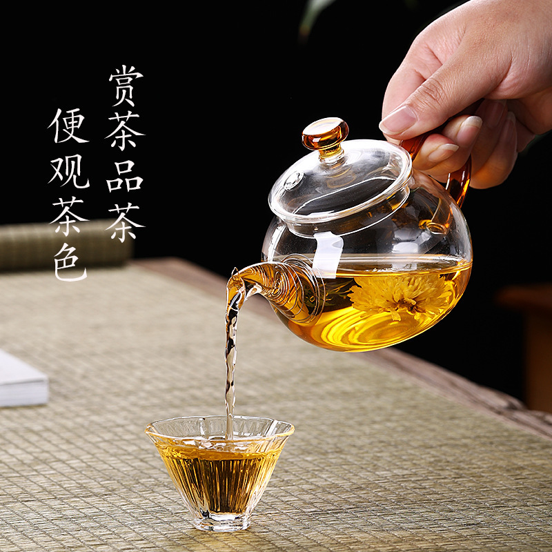 Главная страница > Оптовая продажа стеклянный чайник малый кунг-фу чайный сервиз домашний фильтр чайник цветочный чайник утолщение