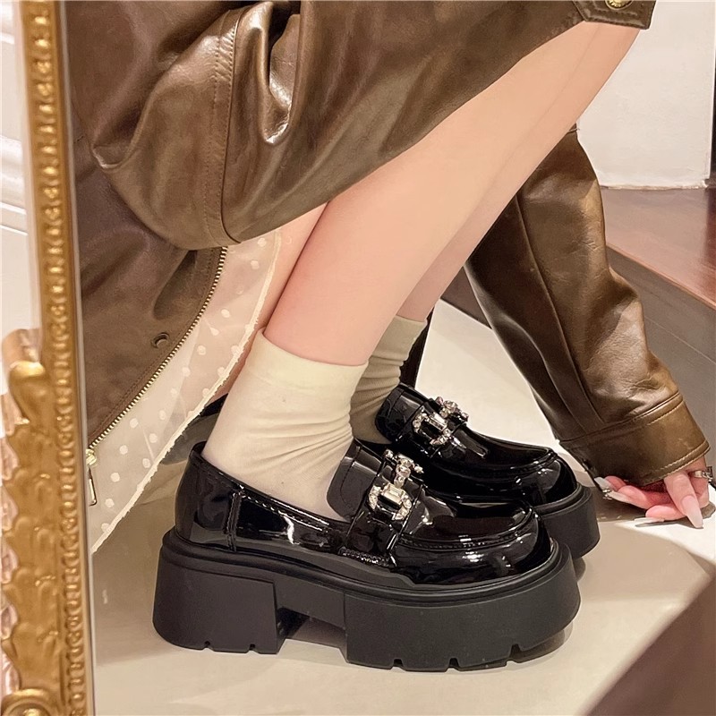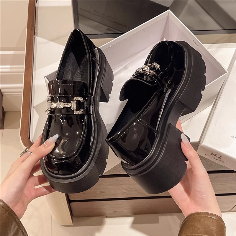 Главная страница > 7 см толстая подошва увеличена кожаная обувь маленькая кожаная обувь женская 2025 новая маленькая обувь для кексов женская обувь в британском стиле