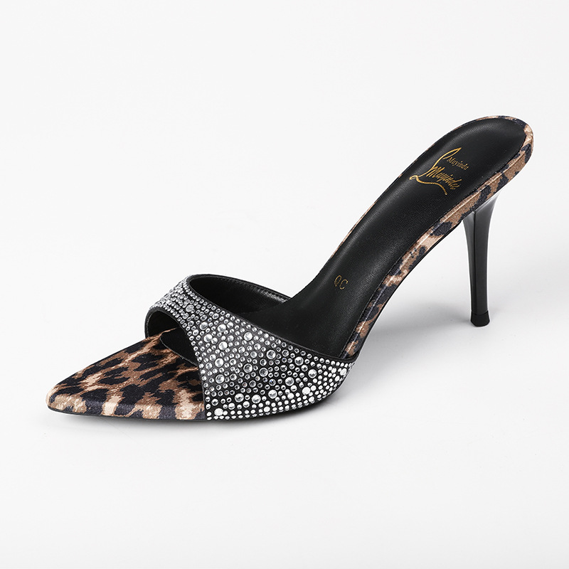 Главная страница > Босоножки женские летние 2025, модель Spot 25L2, новые, с заострённым носком, на шпильке, леопардовый принт, сексуальные, с супервысоким каблуком и стразами.