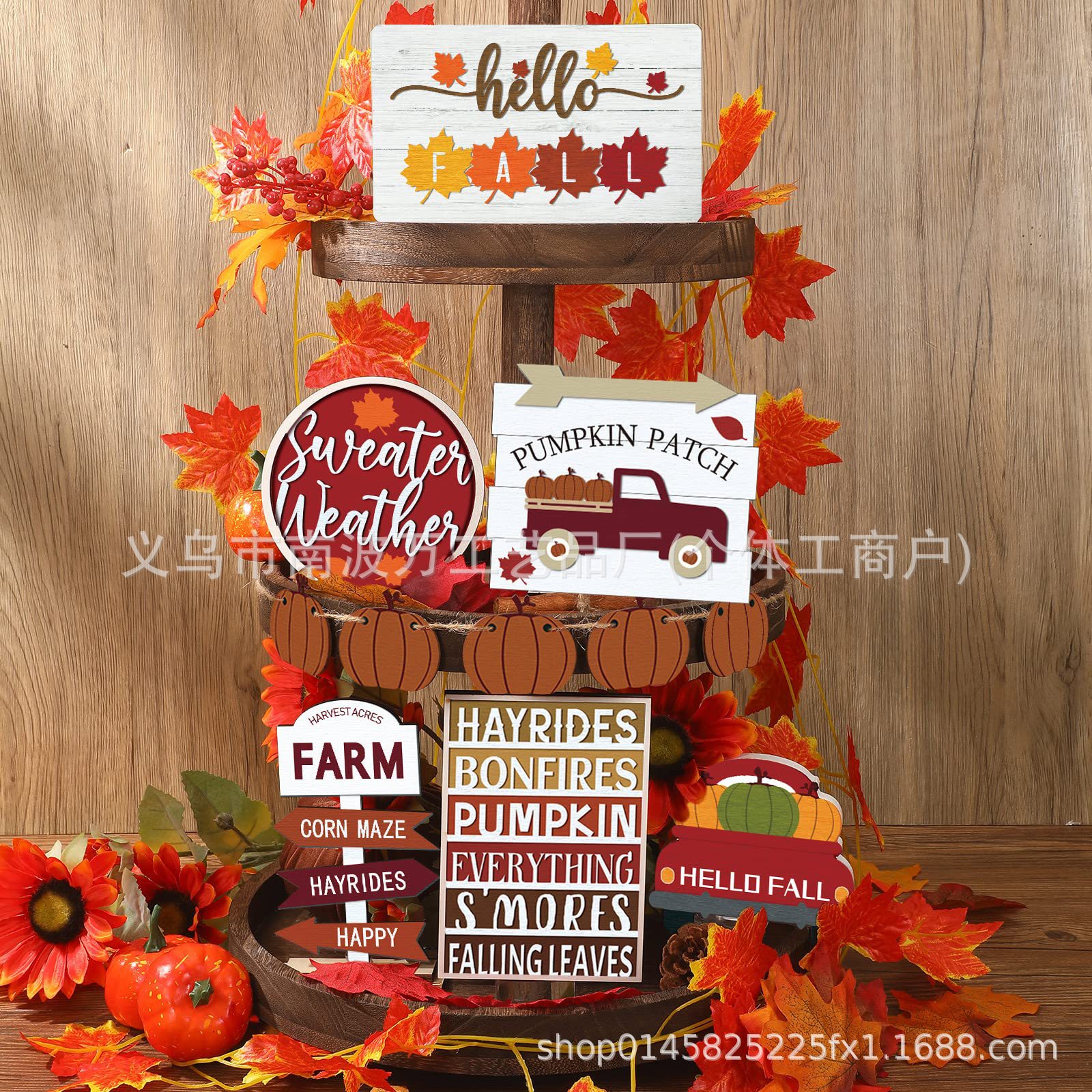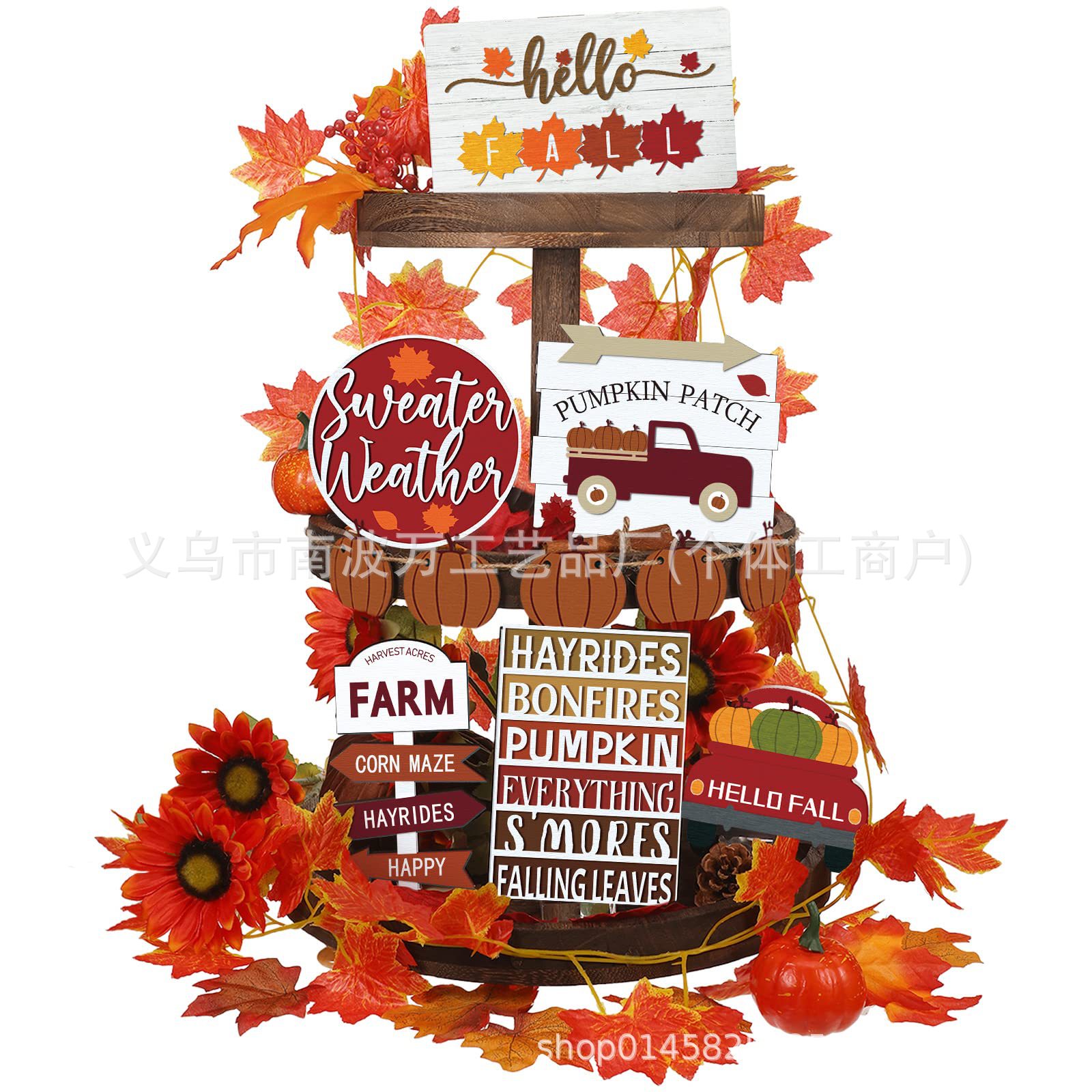 12 шт., многоуровневый поднос на День Благодарения, декор, тыква, фермерский дом, гном, грузовик, деревянная вывеска, декор для стола