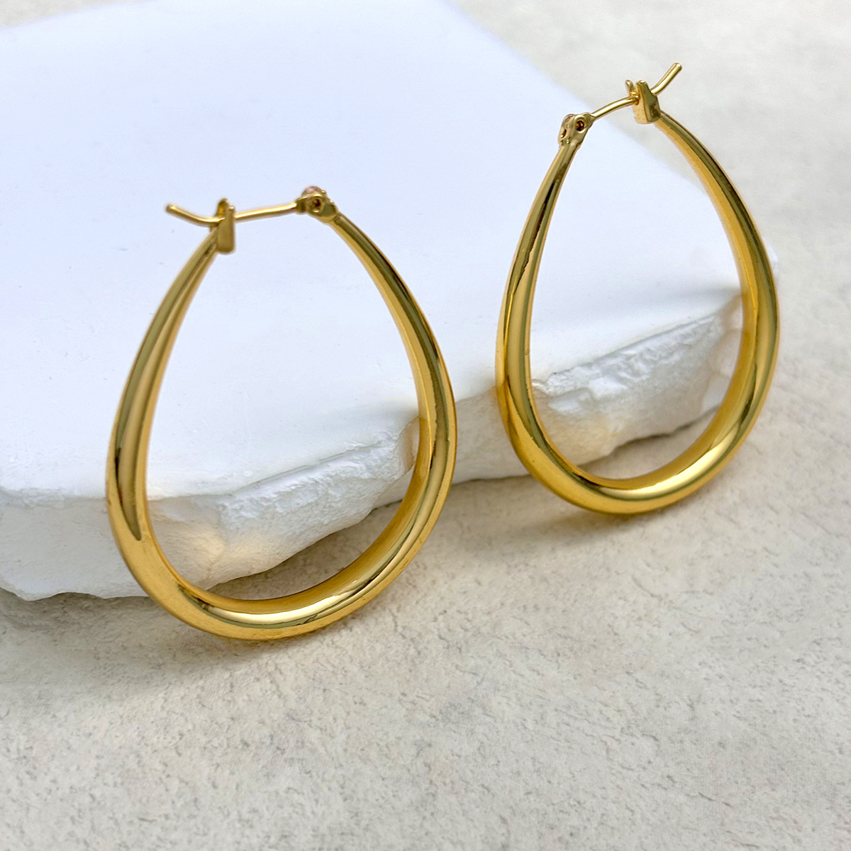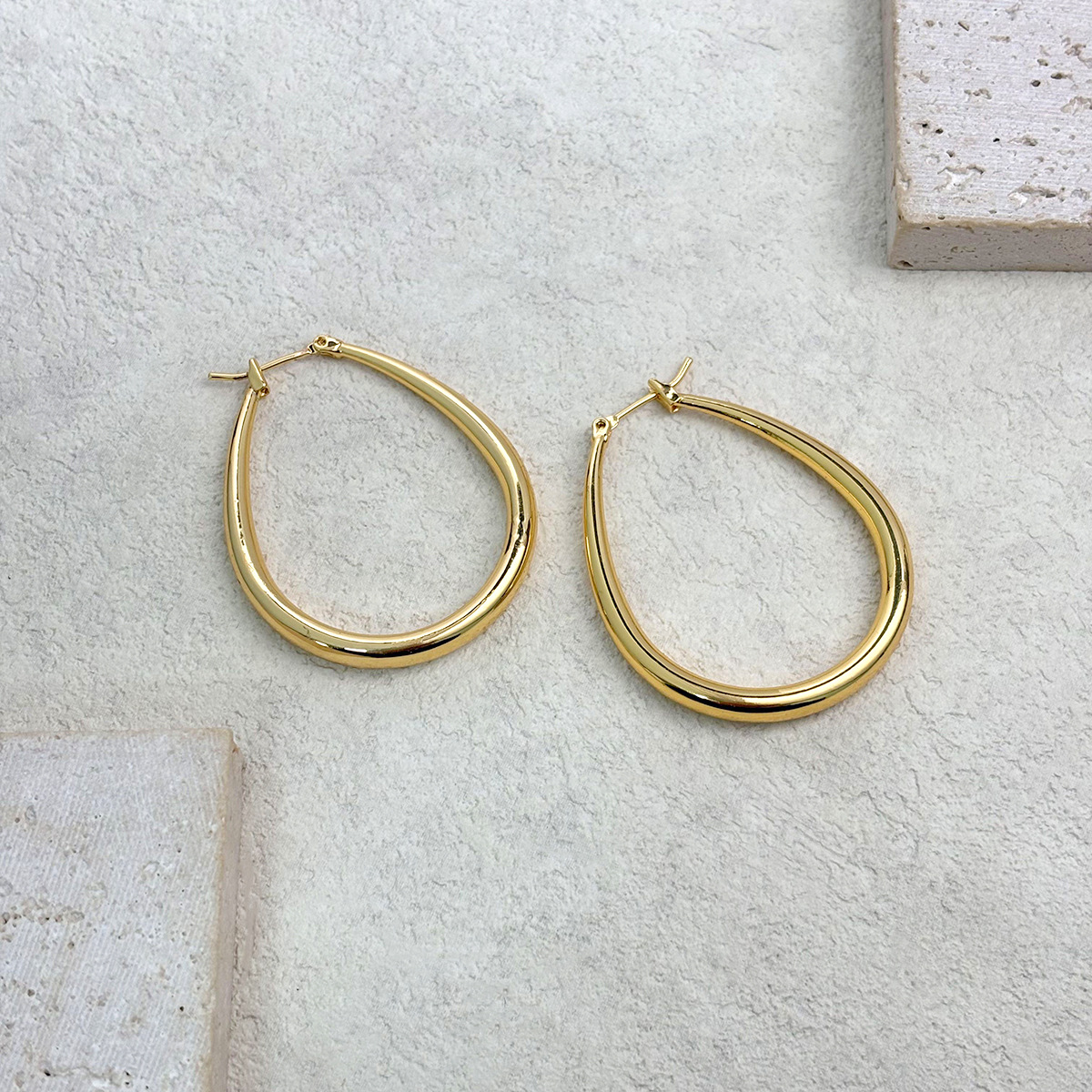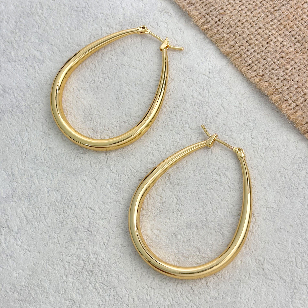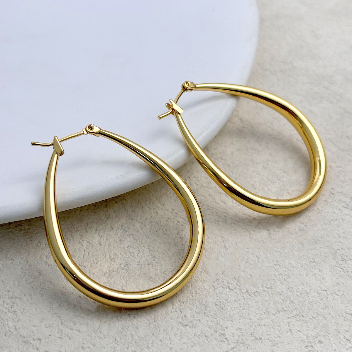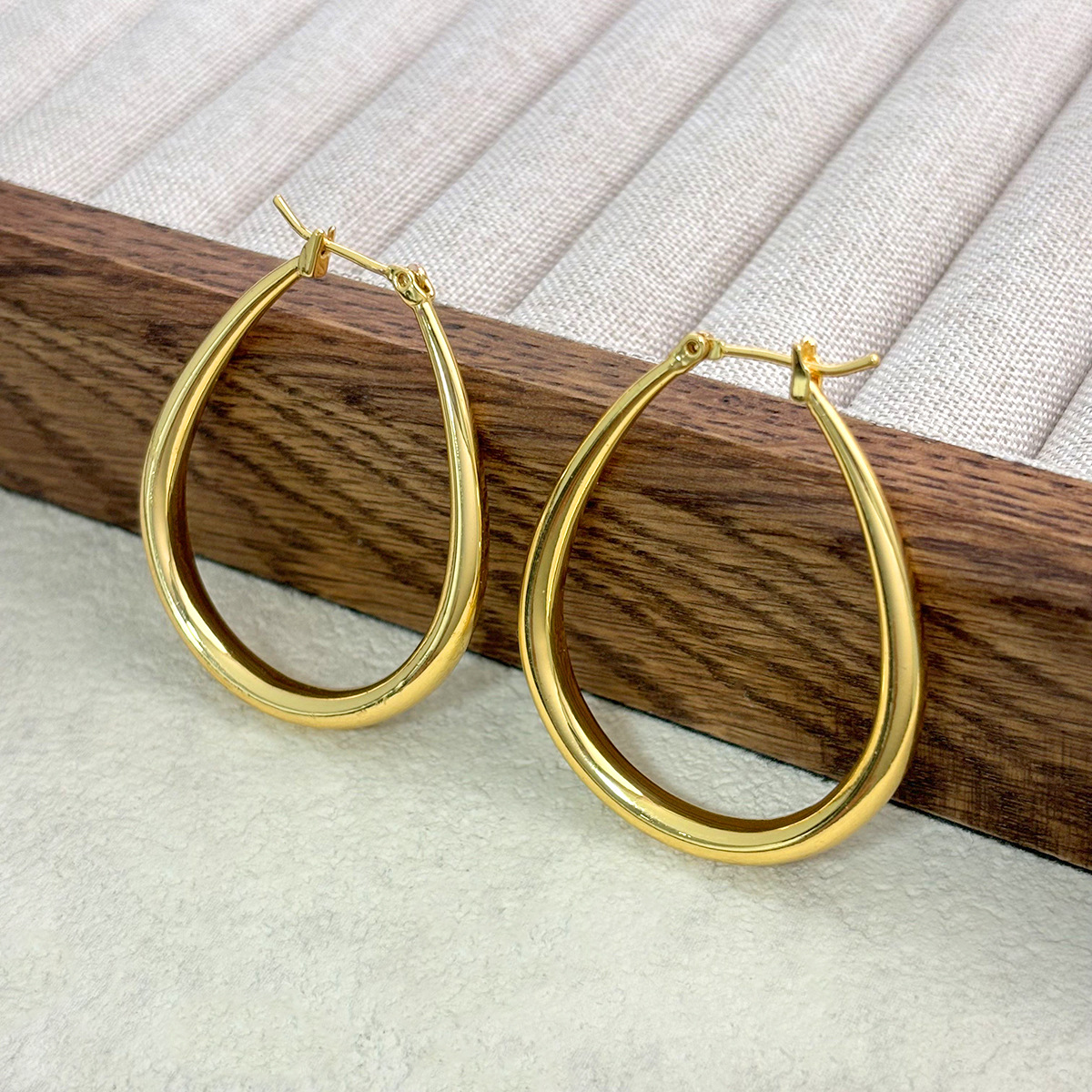 Медное покрытие из натурального золота, цвет, европейский и американский простой круг, серьги-серьги, пустые преувеличенные серьги высокого уровня