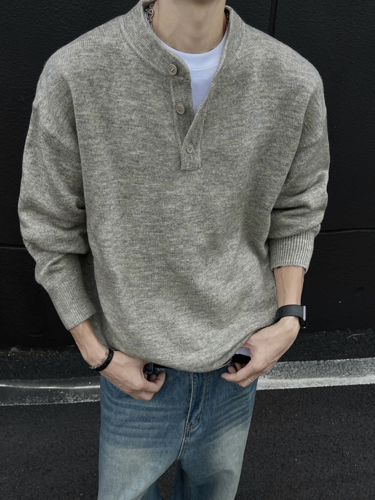 Американский красавчик Henry с воротником свитер мужской 2024 новый осенний и зимний ленивый старый стиль вязаный свитер свитер куртка