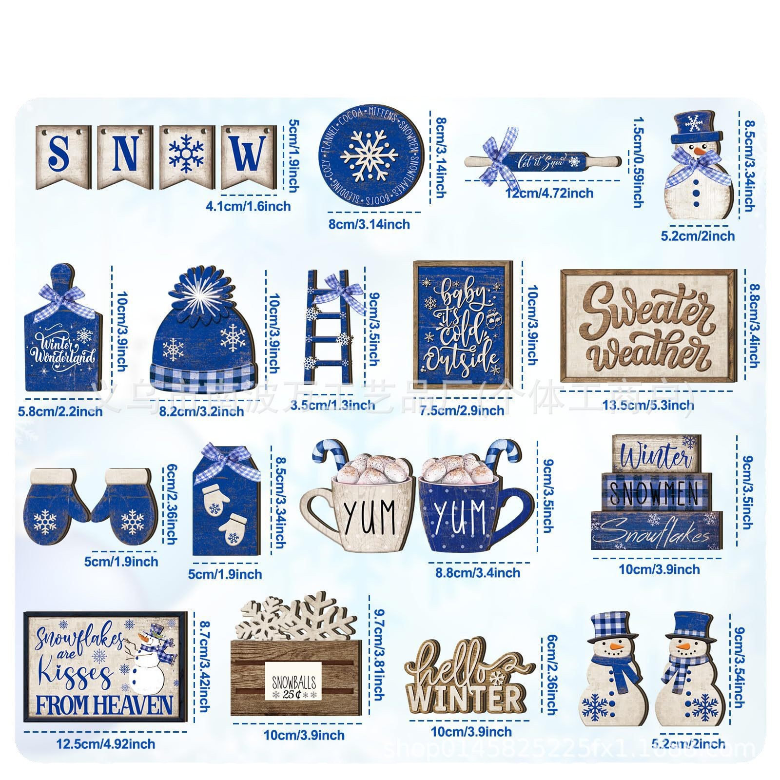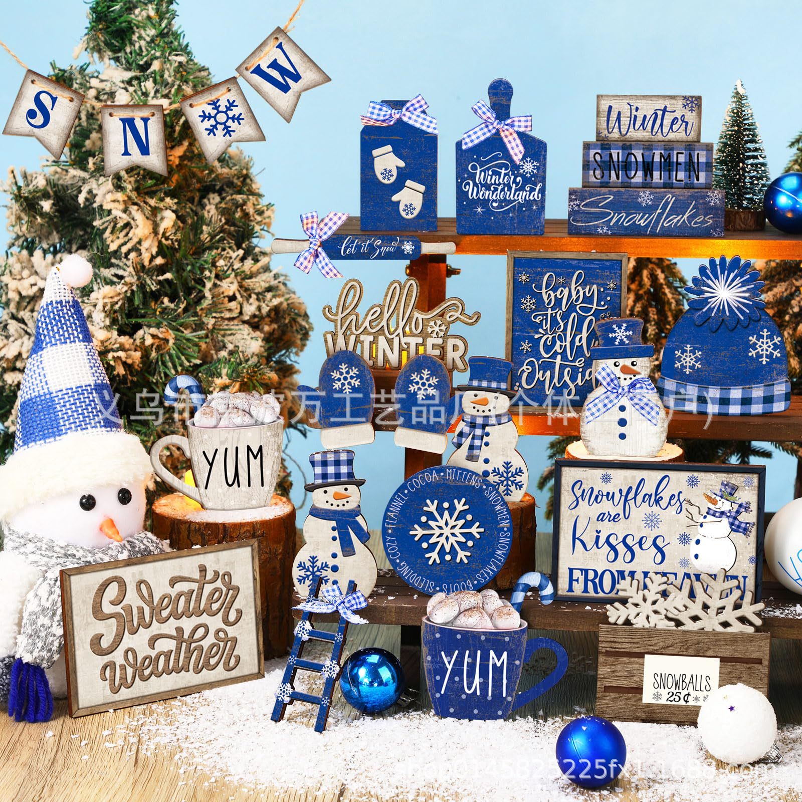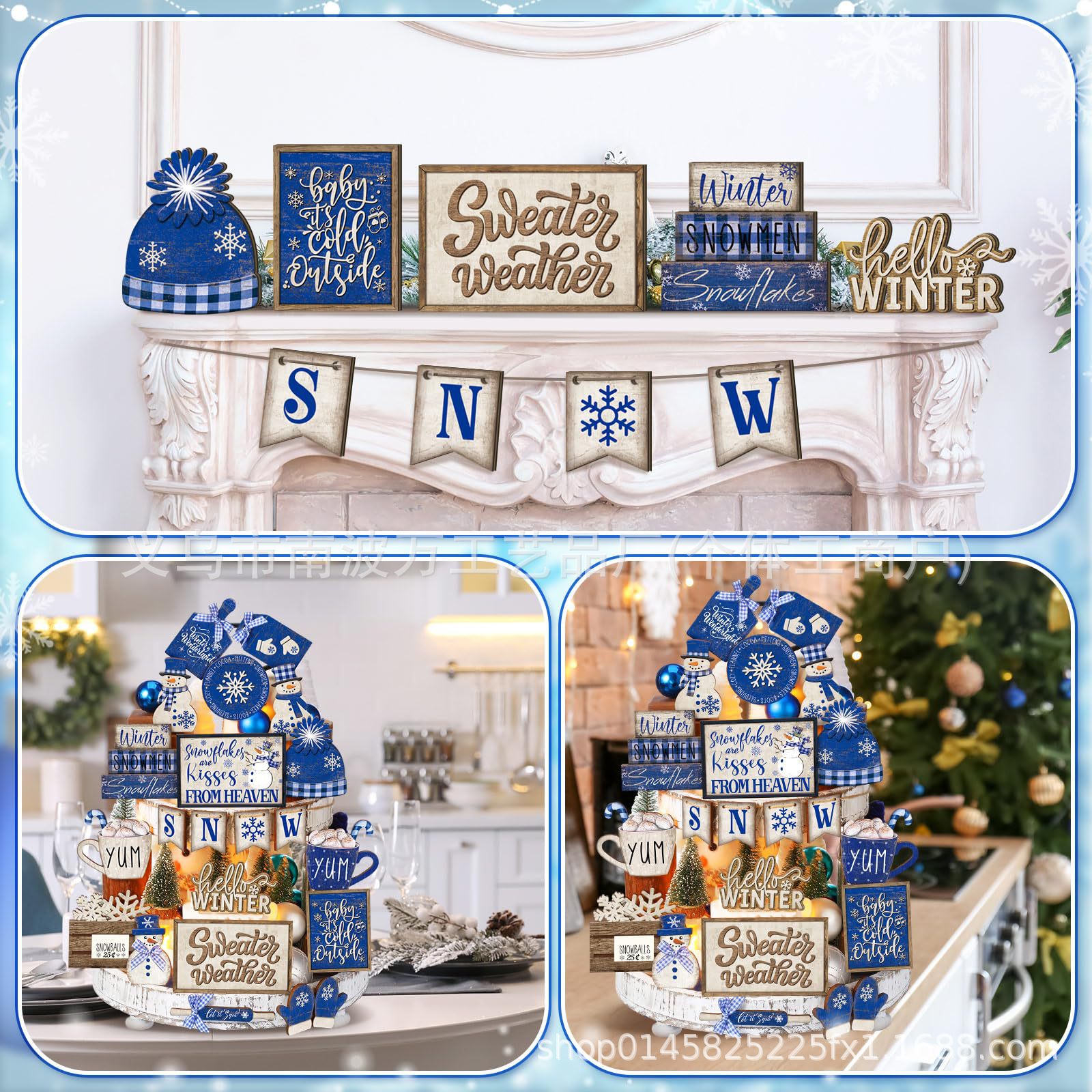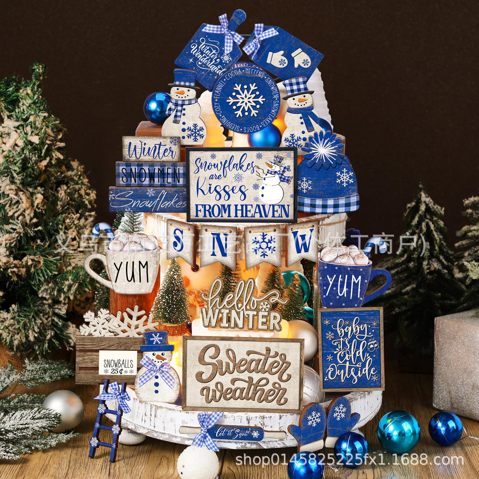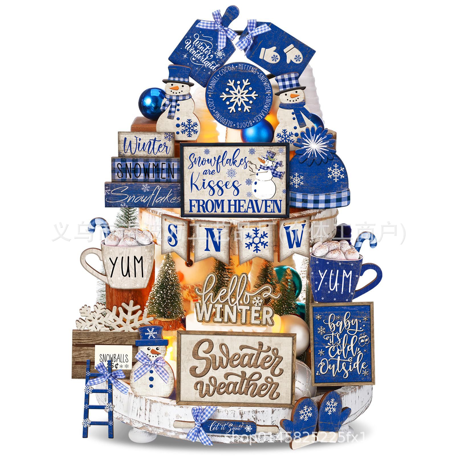 23 шт., зимний многослойный декор для подносов, снеговик, фермерский дом, синий декор для стола, снежинка, снеговик, центральная часть стола