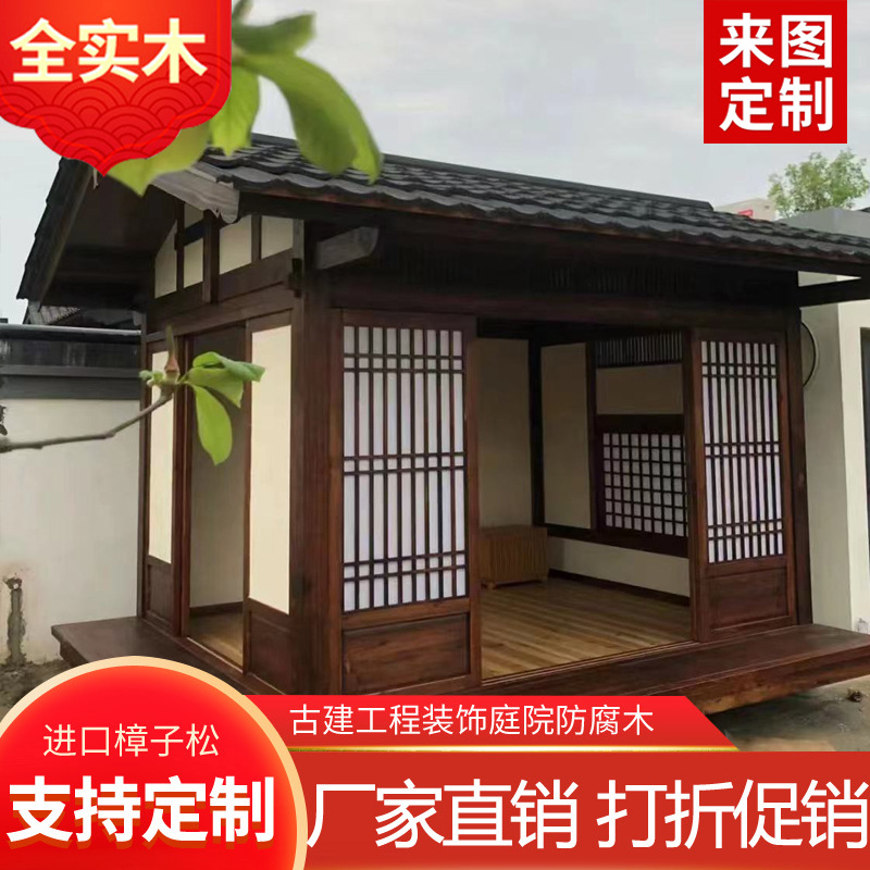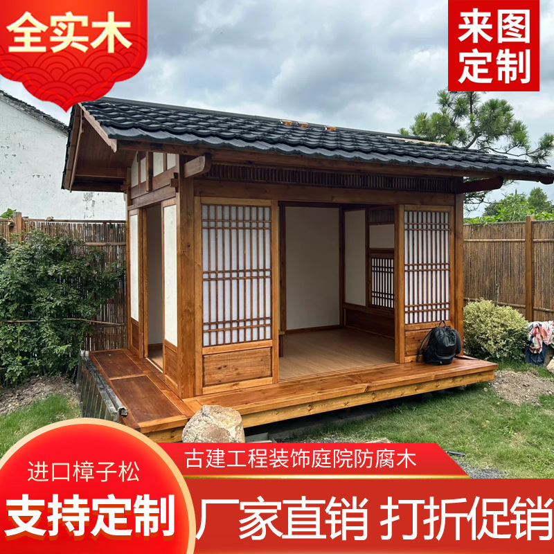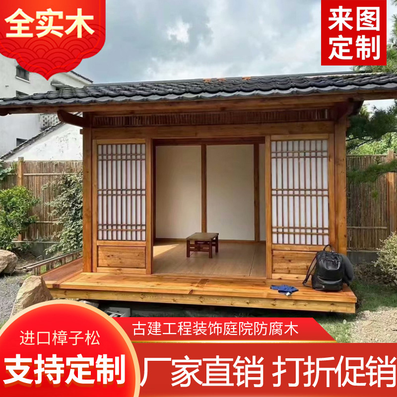 Уличный антикоррозийный деревянный дом в японском стиле, популярный небольшой деревянный дом, вилла B&B, ландшафтный дизайн двора, деревянный дом, уличный соломенный дом