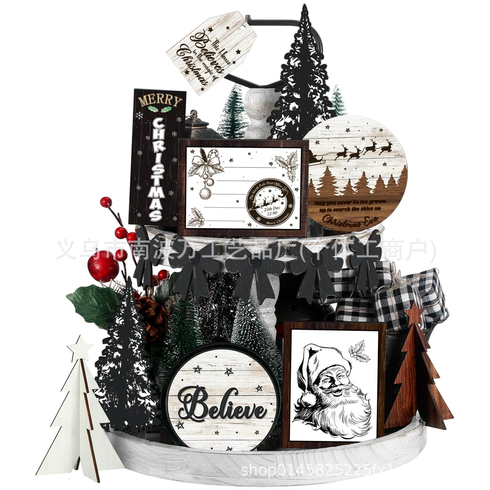 Рождественский многоярусный декор подноса, деревянная вывеска, многоярусный декор подноса в деревенском доме для дома, рождественская зимняя вечеринка, кухня