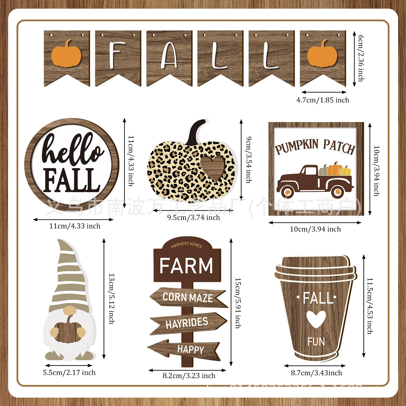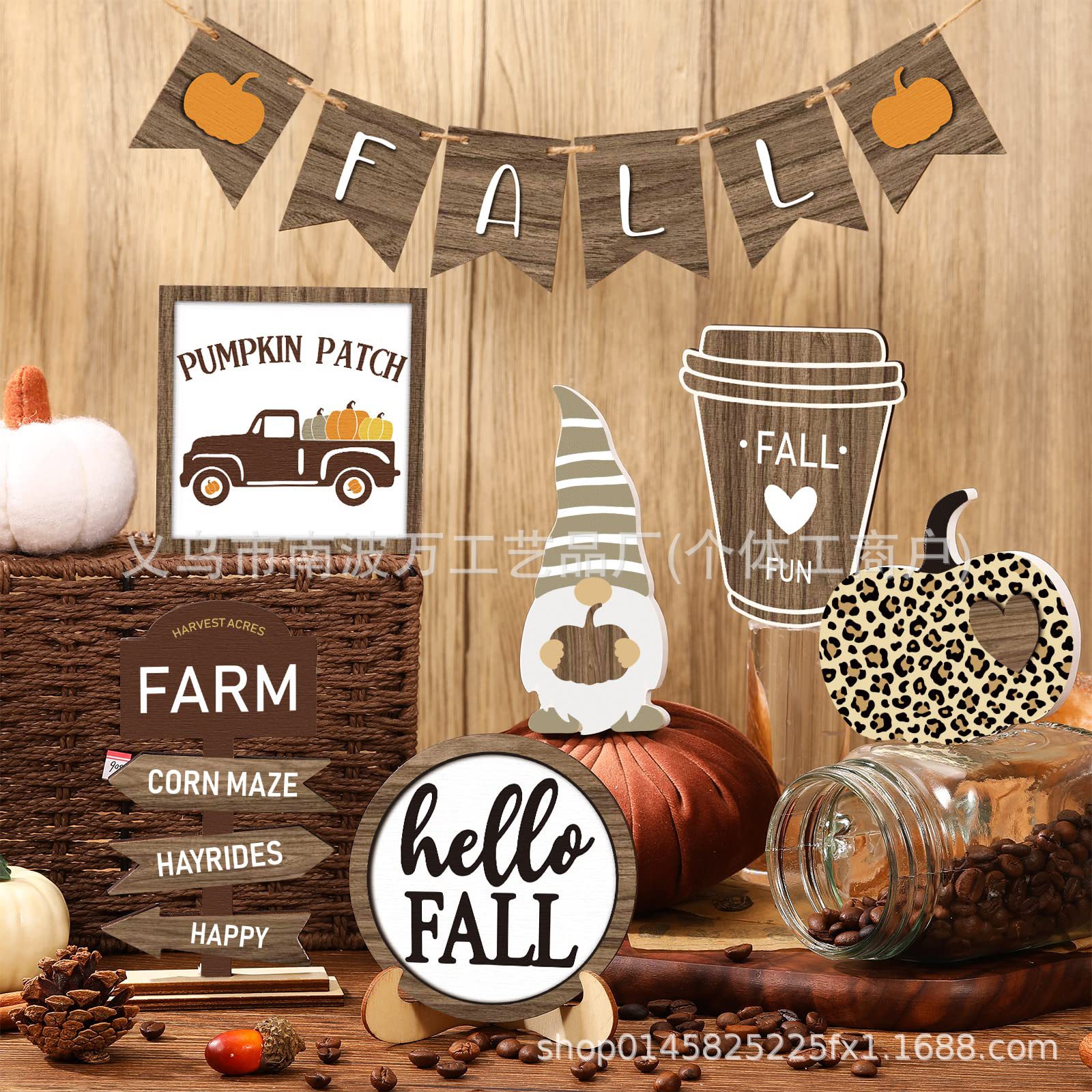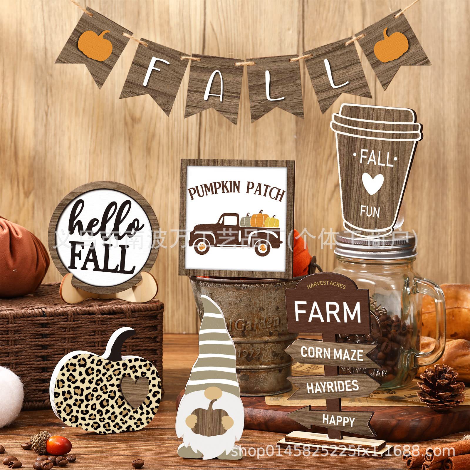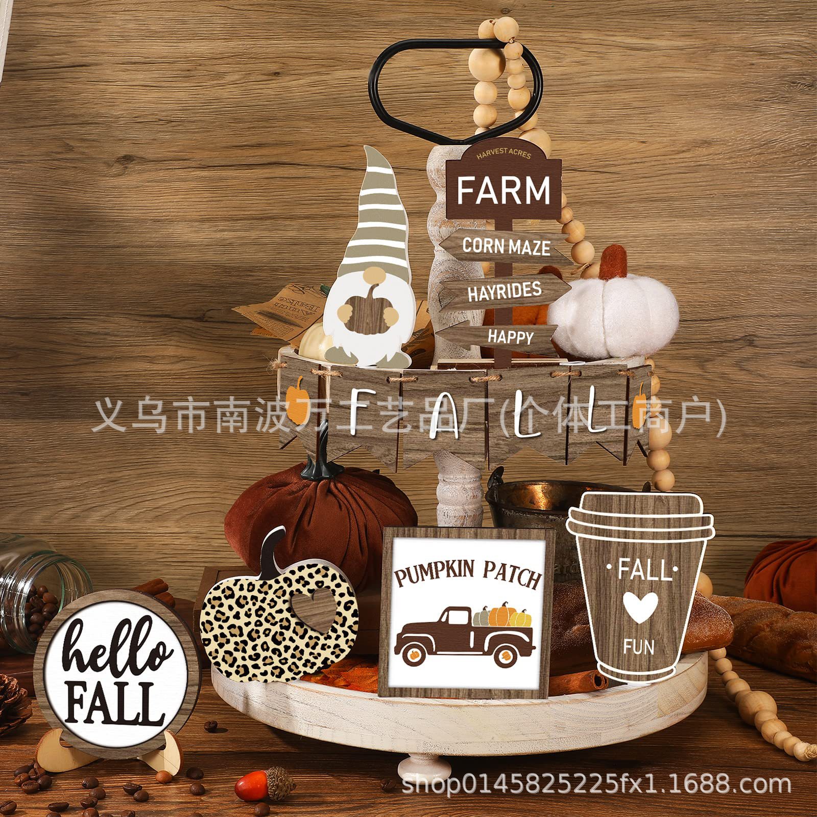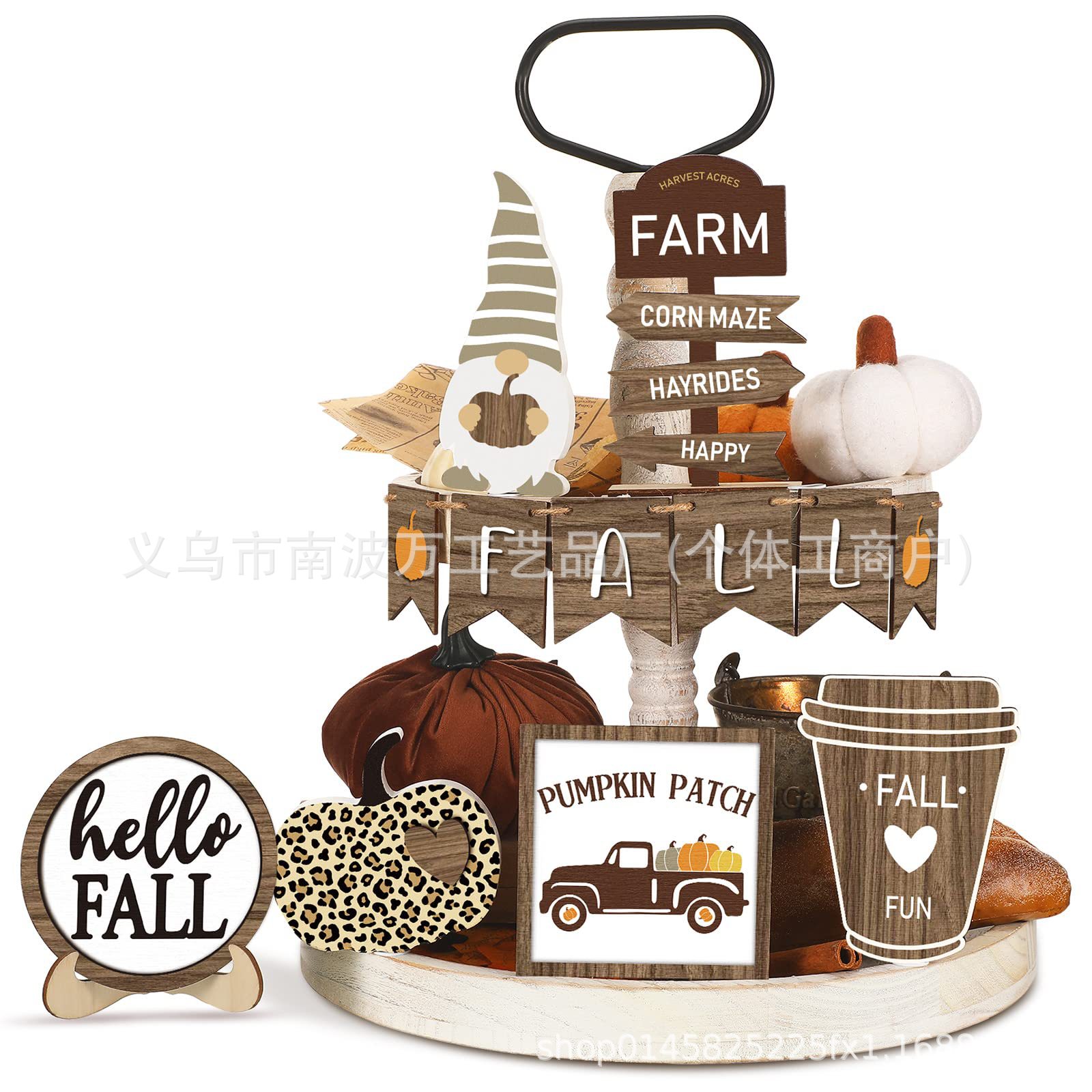 12件秋季农舍分层托盘装饰感恩节南瓜小矮人卡车木质标志乡村装饰