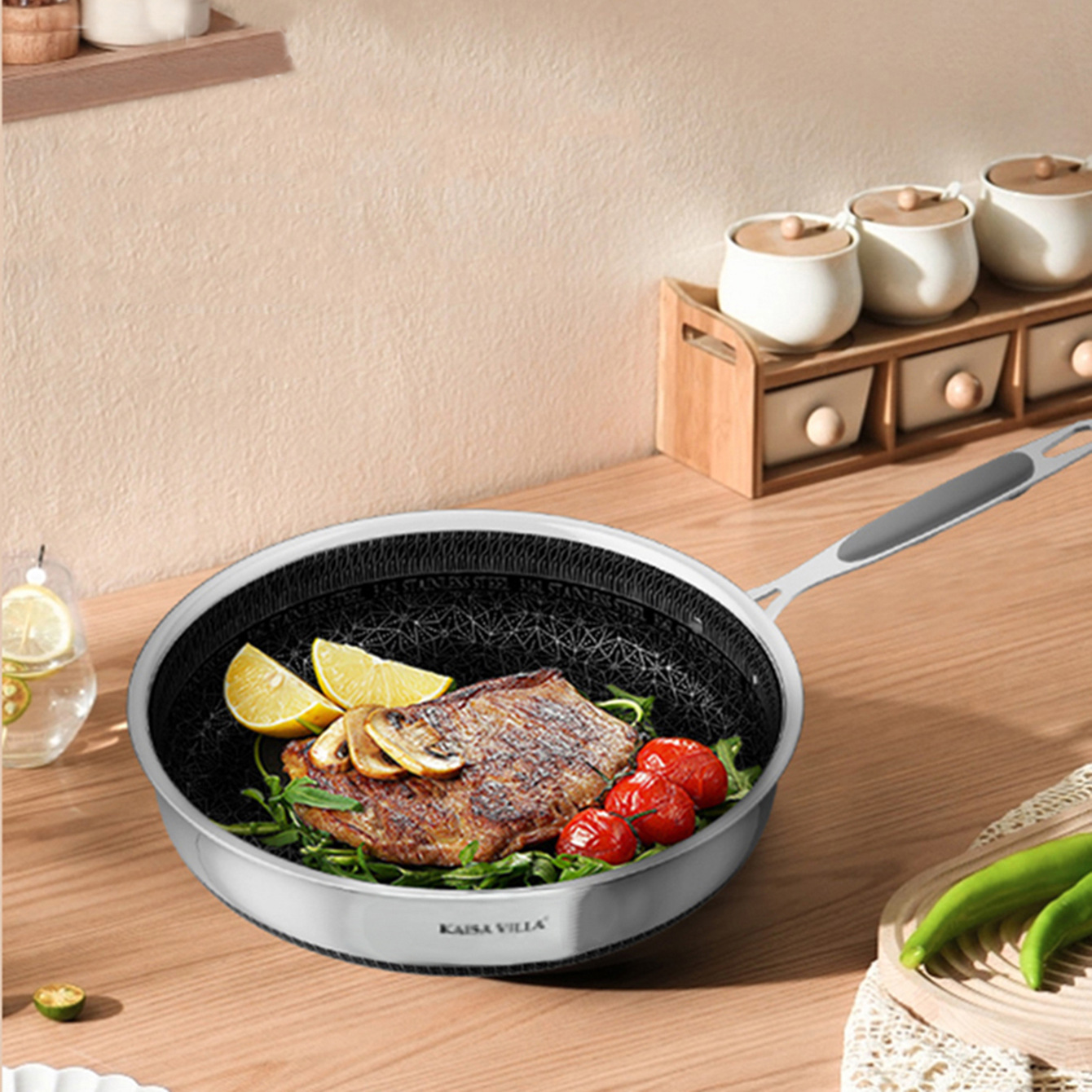 Главная страница > 4-слойная утолщенная сковорода из нержавеющей стали 316L, антипригарная сковорода, сковорода для жарки, сковорода для стейков, двойного назначения для жарки и смешанного приготовления, для домашнего использования