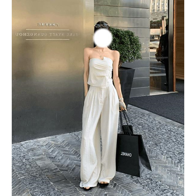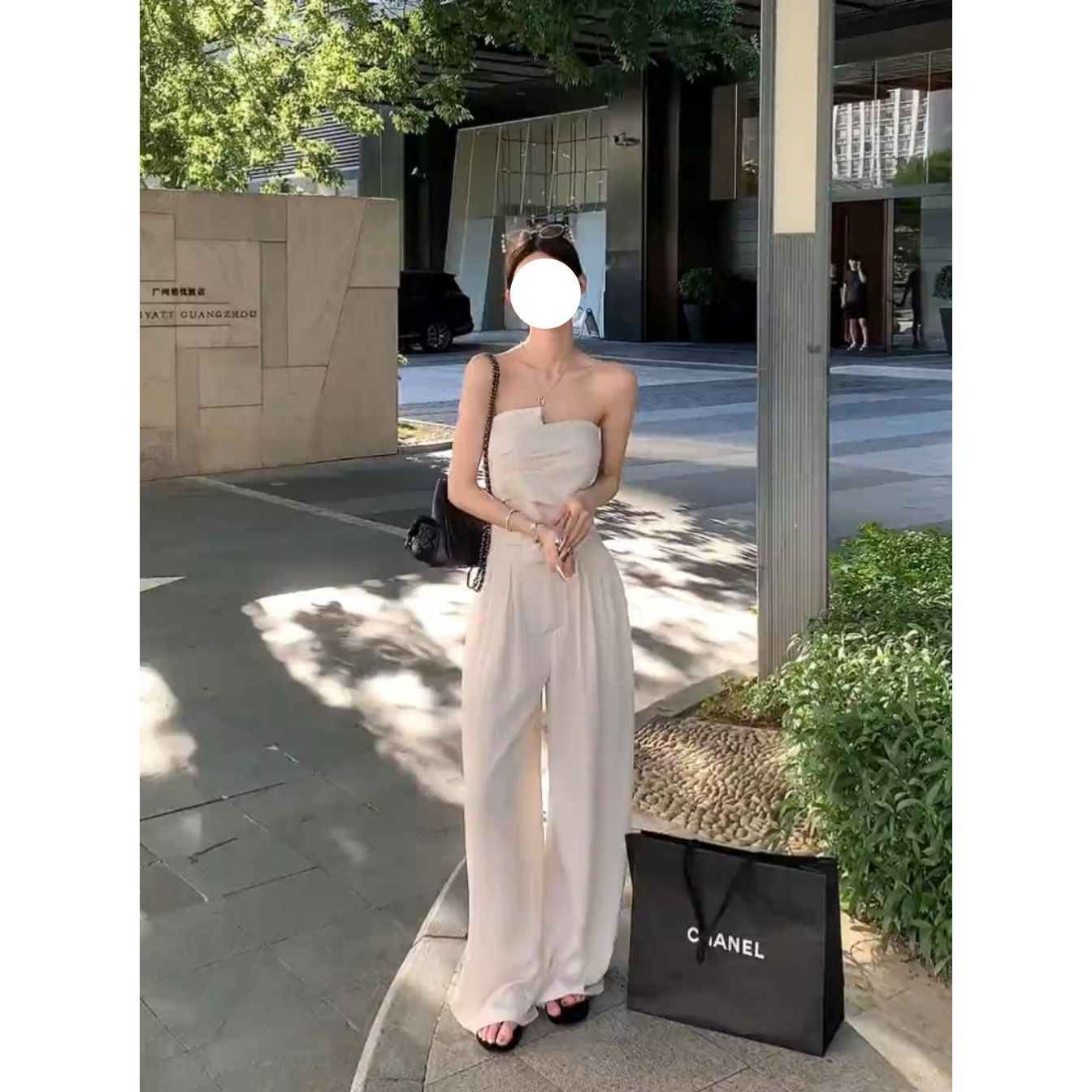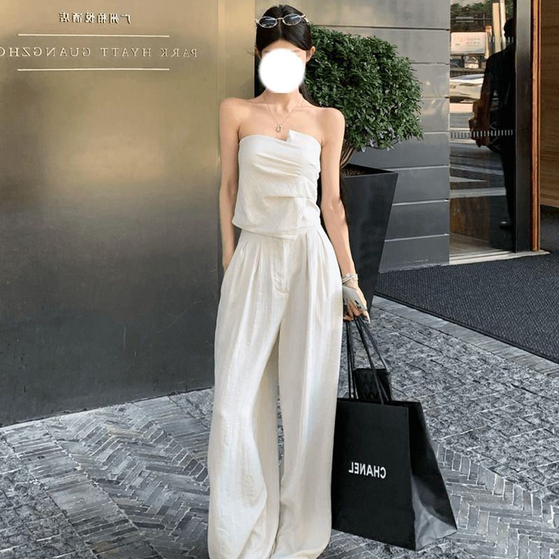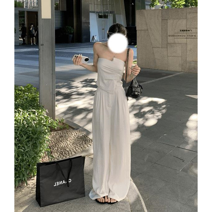 Главная страница > Французская сексуальная горячая девушка с нерегулярными складками, обертывание груди, летняя белая текстура, высокая талия, широкие брюки, набор женщин