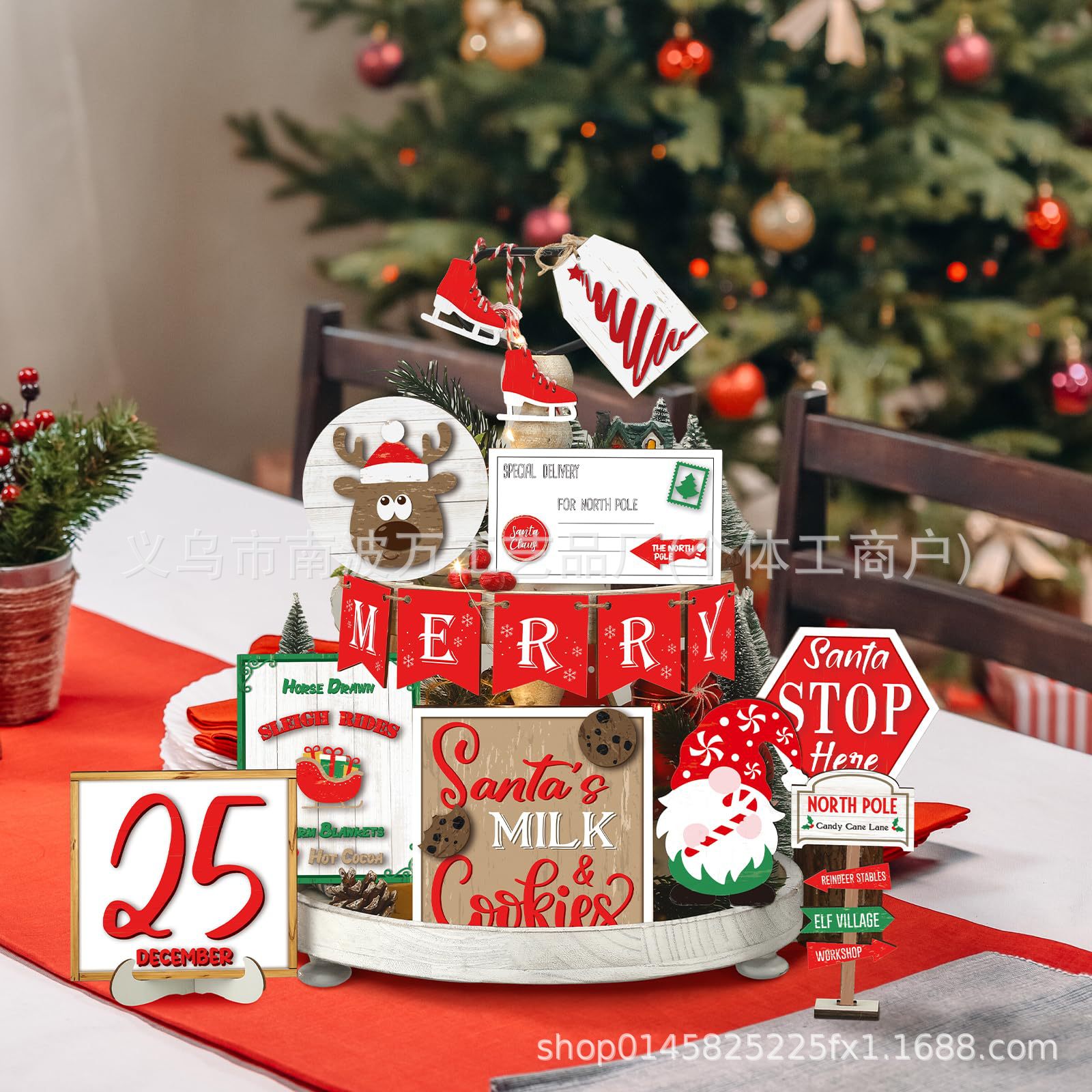 15 рождественских многослойных украшений для подносов: рождественский лось, гном, деревянные таблички Санта-Клауса, рождественский фермерский дом.