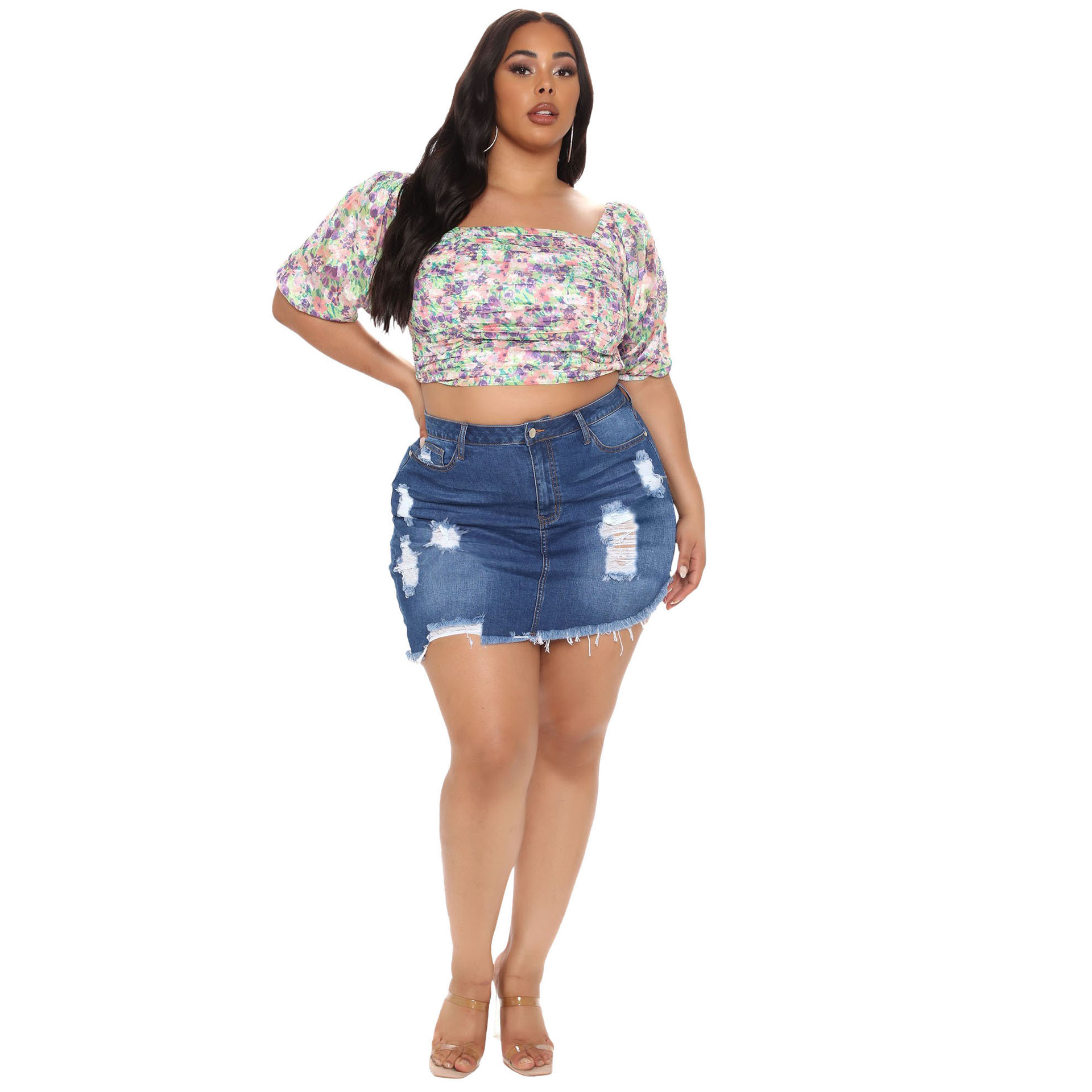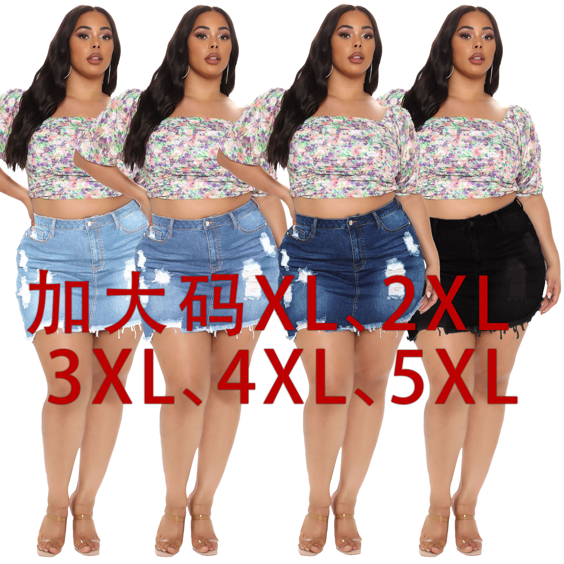Главная страница > Трансграничная HSF2413 Амазонка Европа и Америка Сексуальная джинсовая юбка Джокер ручной работы с обожженной высокой талией Нерегулярная джинсовая юбка