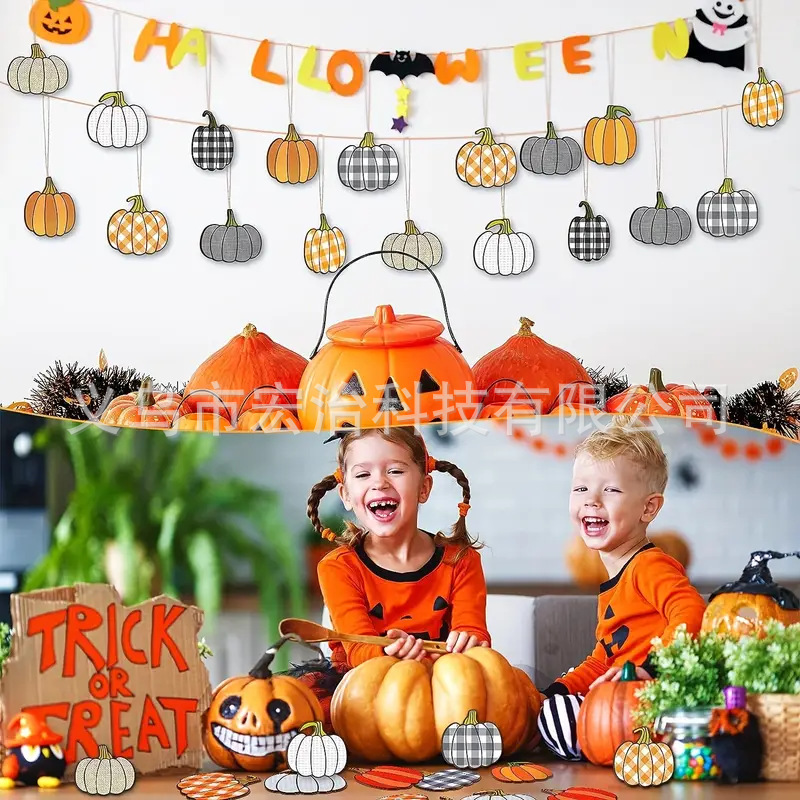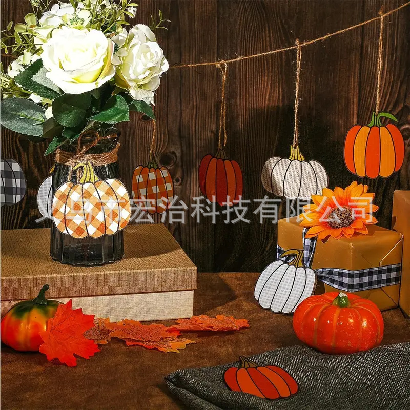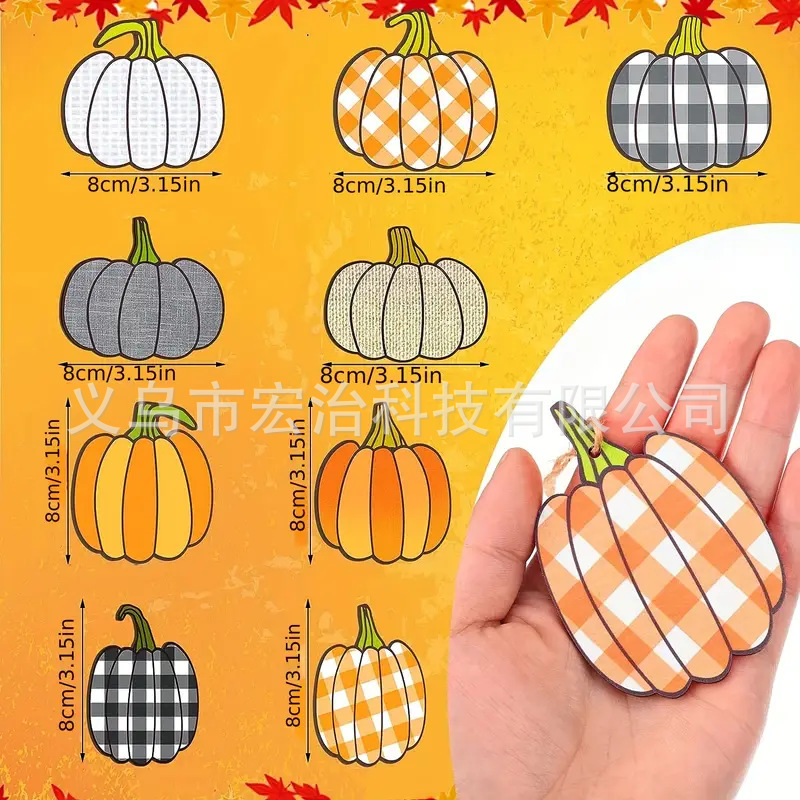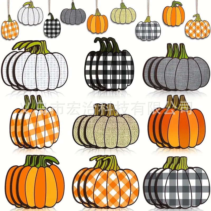 Главная страница > 2 деревянные подвесные украшения в виде тыквы на День Благодарения и Хэллоуин — деревенский стиль фермерского дома, клетчатый узор