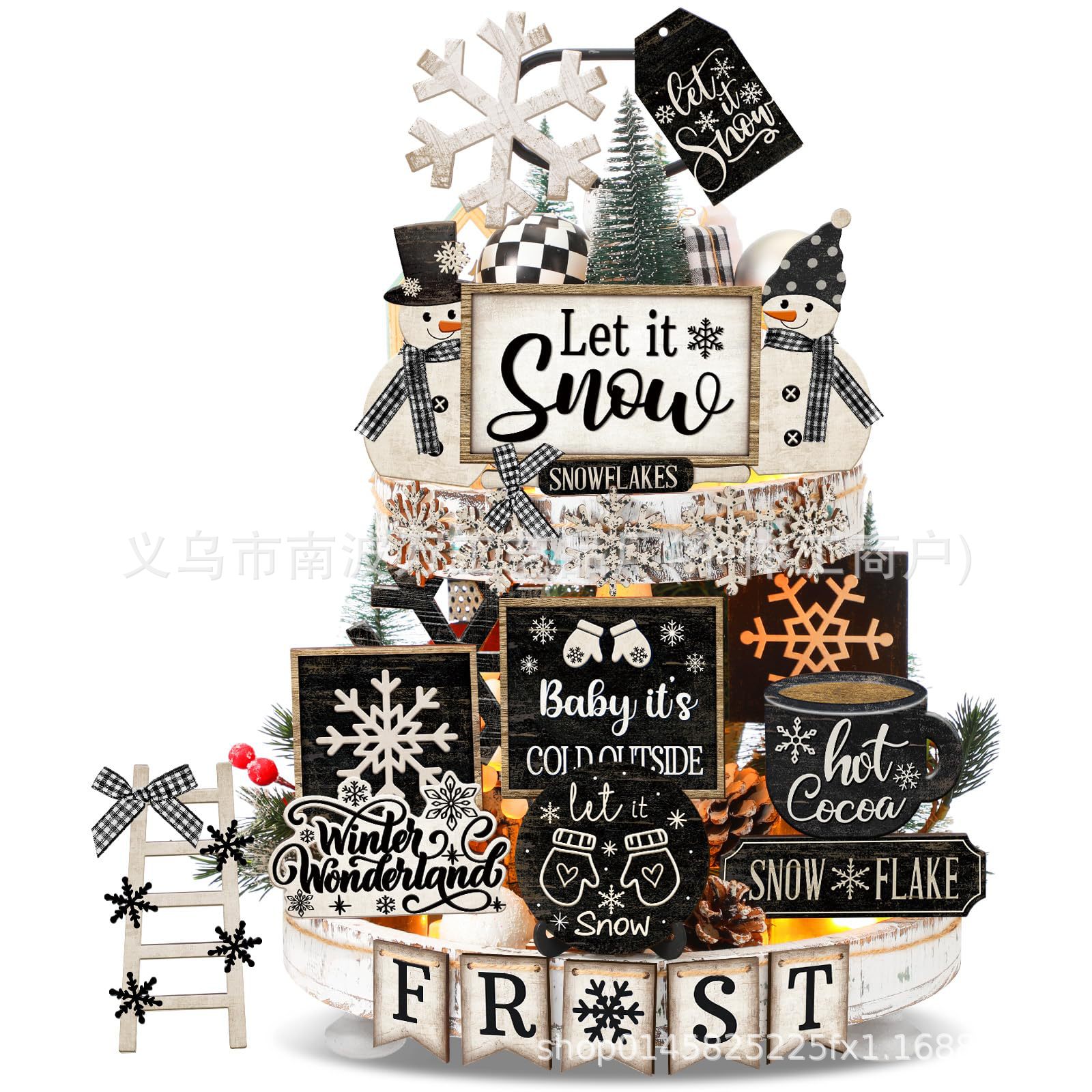 Главная страница > 25 шт., зимний многослойный декор для подносов, деревянные деревенские зимние украшения для дома, снежинка, настольная подставка, Рождественский декор для фермерского дома