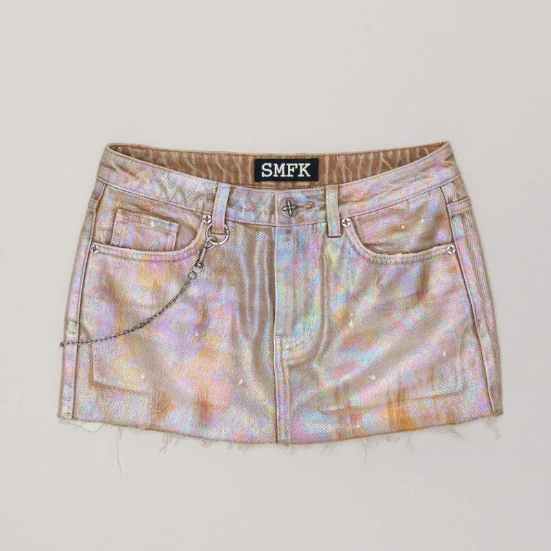 SMFK Wild Continent Symphony Джинсовая юбка (ручная работа) Юбка с металлическими брюками и цепочкой