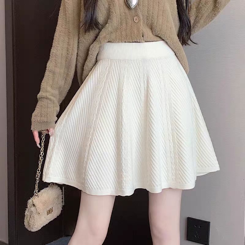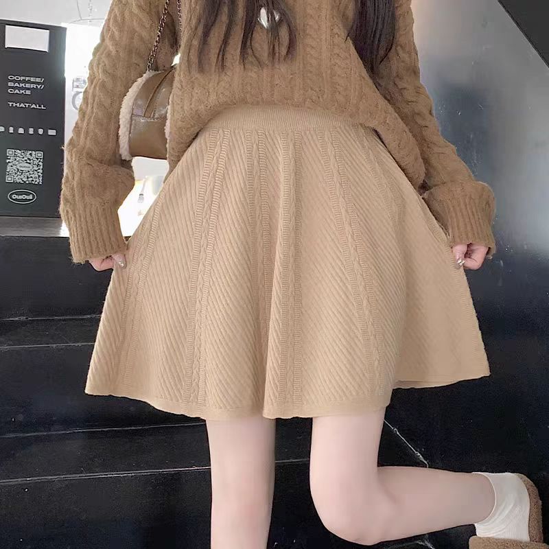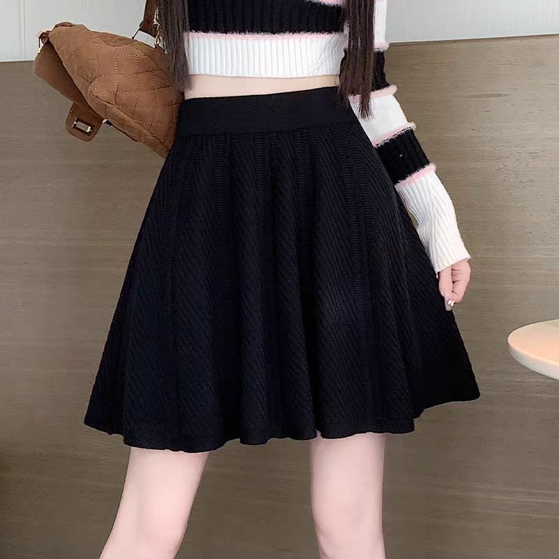 Главная страница > Плиссированная трикотажная юбка в корейском стиле для женщин, осенняя новая модная универсальная однотонная трикотажная юбка с высокой талией, закрывающая бедра