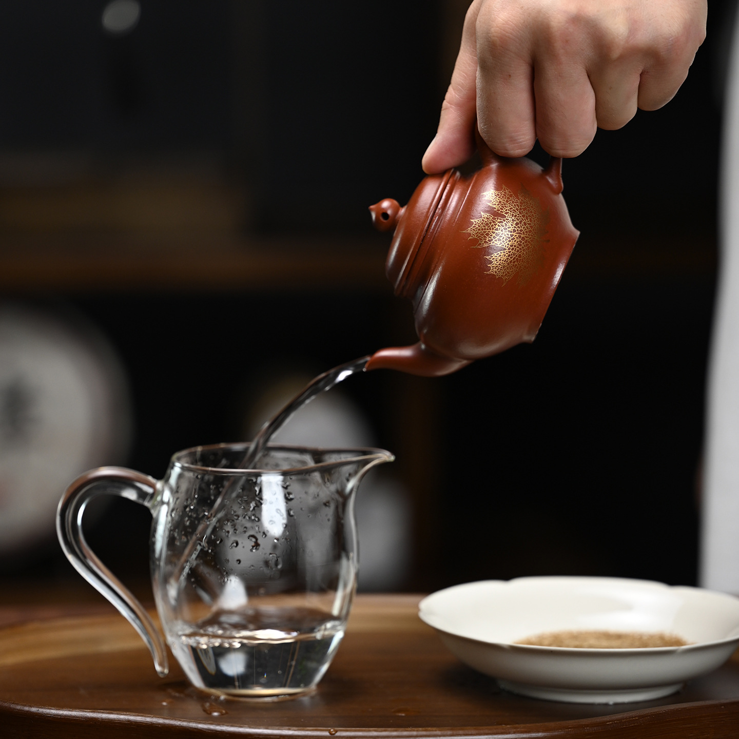 Оригинальный минерал Да Хун Пао, чистое золото ручной работы, улыбающаяся вишня, китайский стиль, посыпанный золотом, для самостоятельного использования, фиолетовый глиняный горшок Исян, чайник кунг-фу, 180 мл