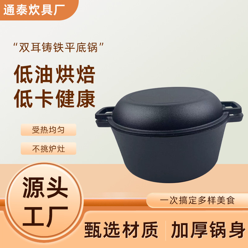 Чугунная универсальная кастрюля 26 см для тушения и приготовления супов, без покрытия, с двумя ручками, с плоским дном, оптом от производителя