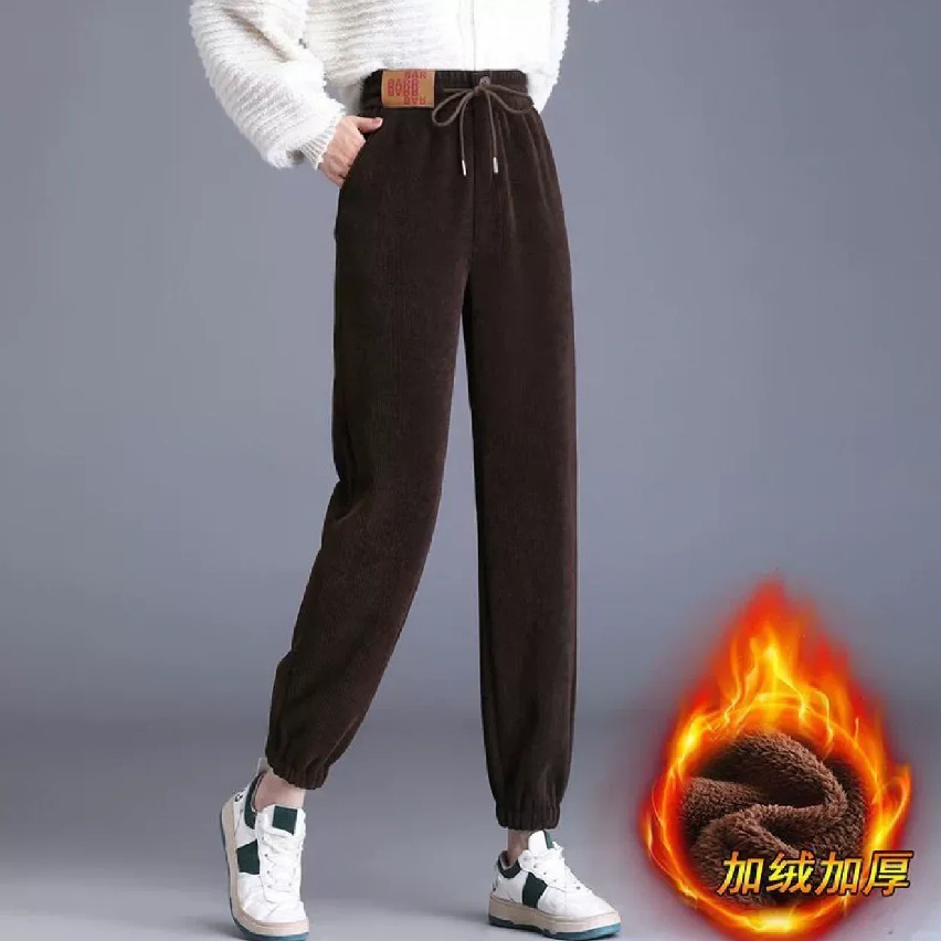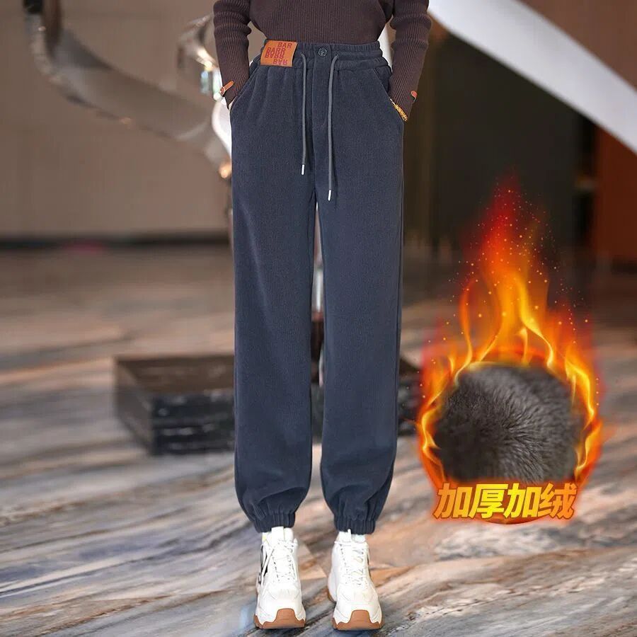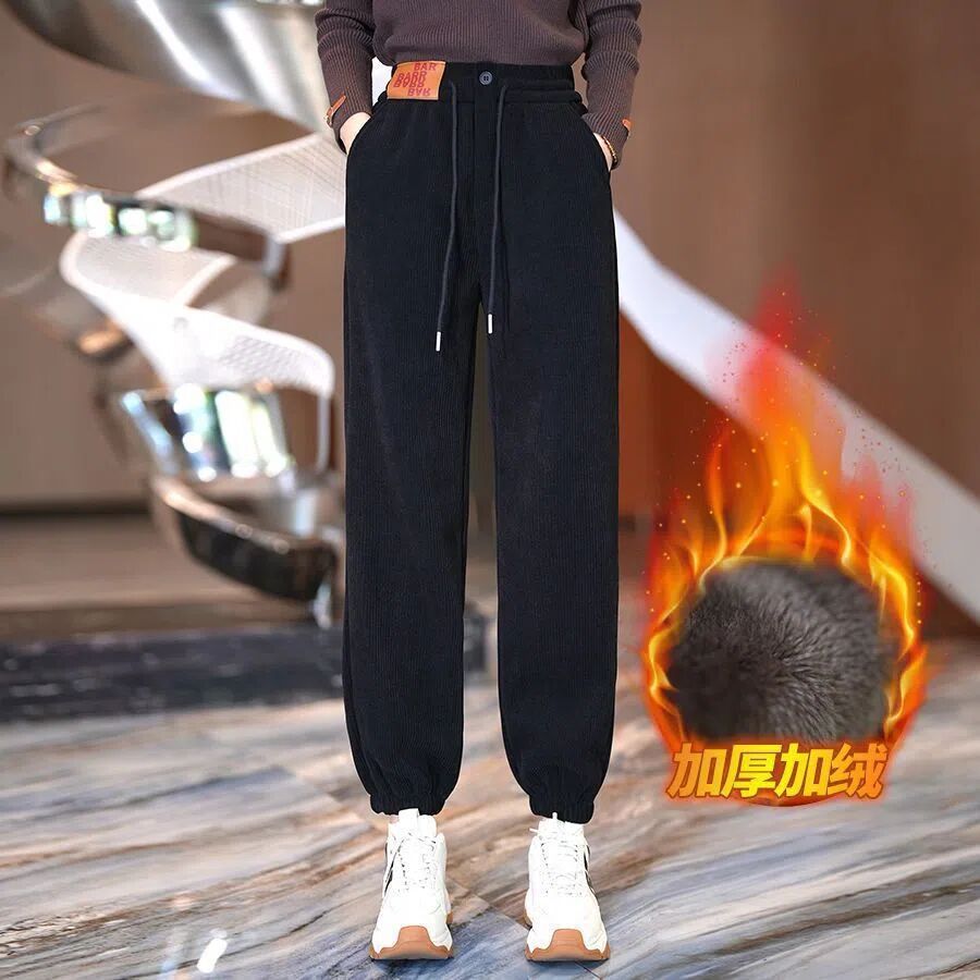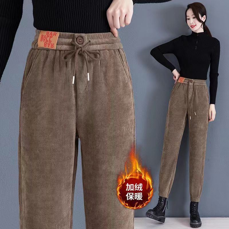 Осенняя женская свободная тонкая нога с высокой талией прямые брюки зимний досуг гаран репа брюки вельветовые брюки