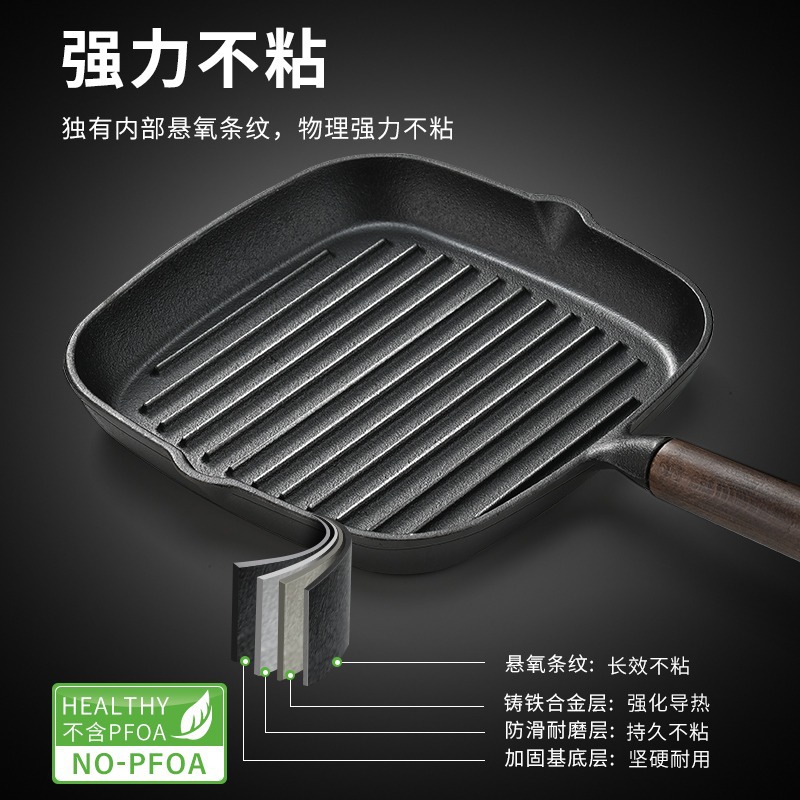 Сковорода для стейка, импортная бытовая индукционная сковорода с покрытием, немецкая чугунная сковорода для завтрака, полосатая сковорода для стейка.