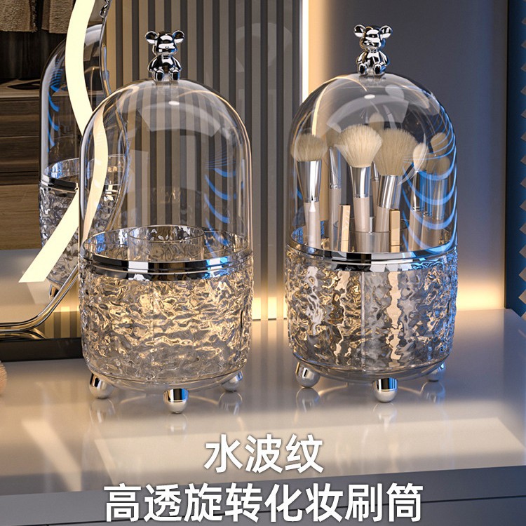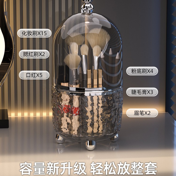 Легкий роскошный ящик для хранения кистей для макияжа, вращающийся пылезащитный круглый ящик для хранения на рабочем столе для спальни, оптовая продажа