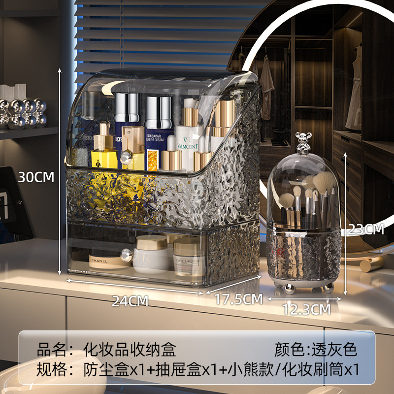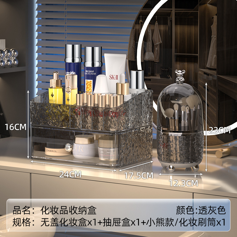 Комбинация 4. Прозрачная серая модель [Двухслойная пылезащитная косметическая коробка + вращающееся косметическое ведро, модель медведя]