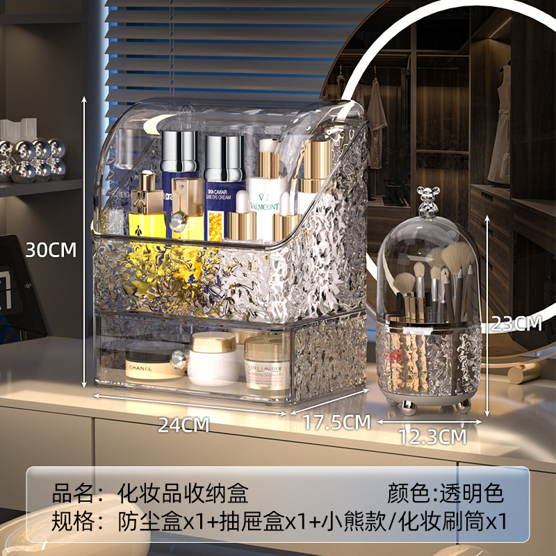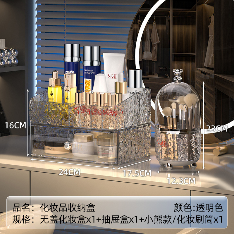 Комбинированная прозрачная модель 3 [Двухслойная пылезащитная косметическая коробка + вращающееся косметическое ведро, модель медведя]