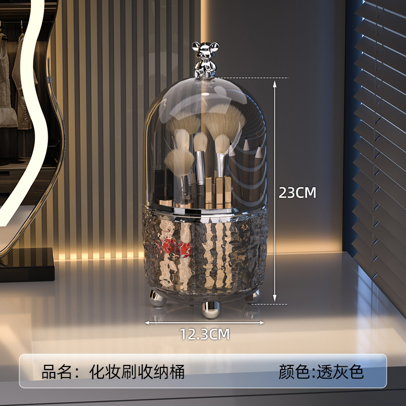 Вращающееся ведро для макияжа в стиле медведя [прозрачный серый]
