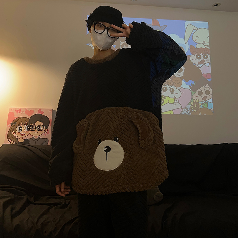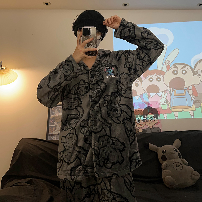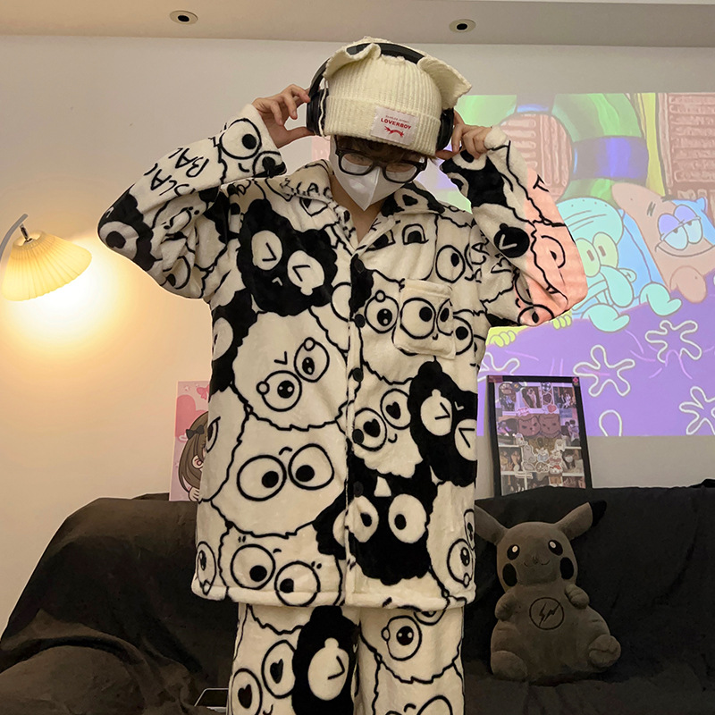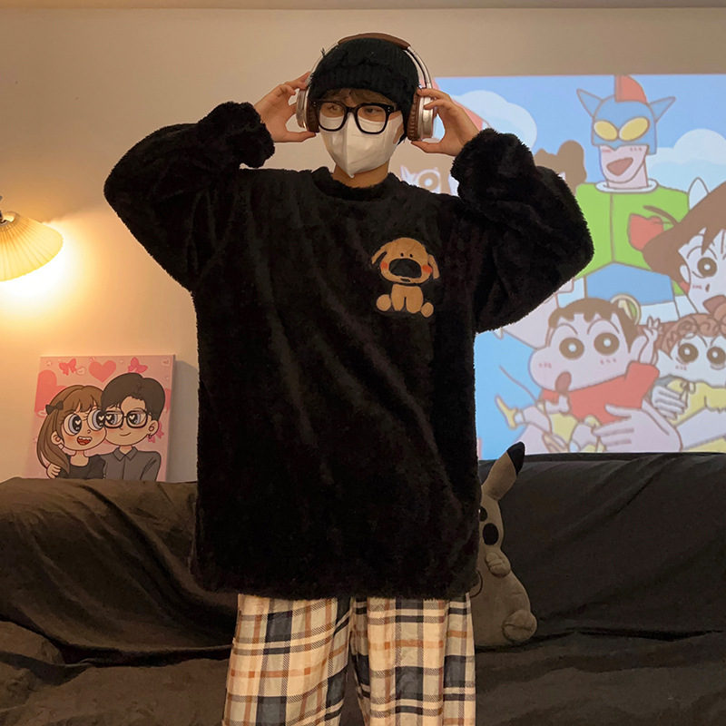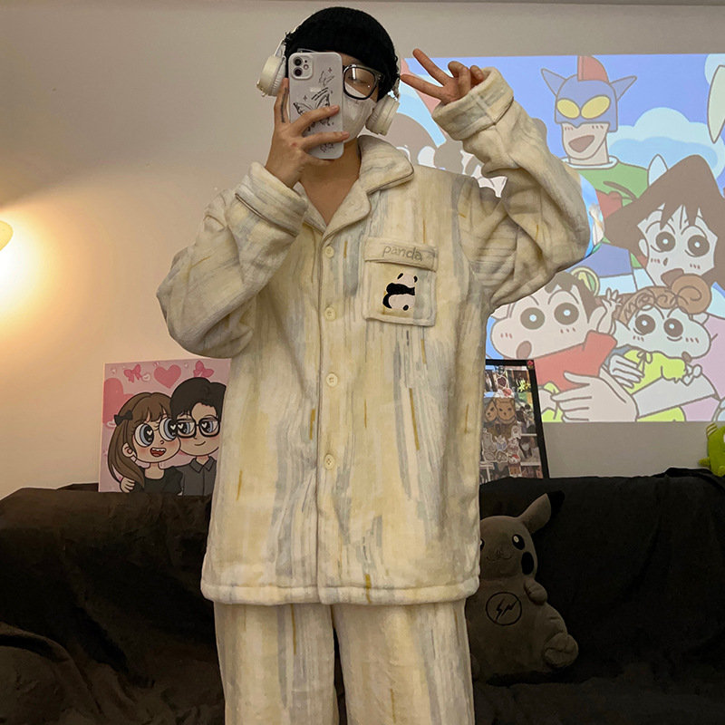 Главная страница > Толстая коралловая бархатная пижама для мужчин осенью и зимой фланелевая корейская маленькая молочная собака большого размера может носить домашнюю одежду