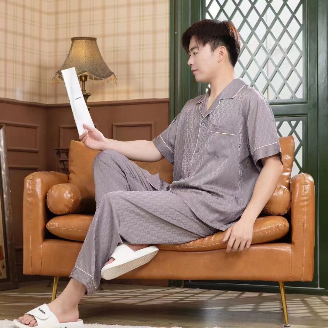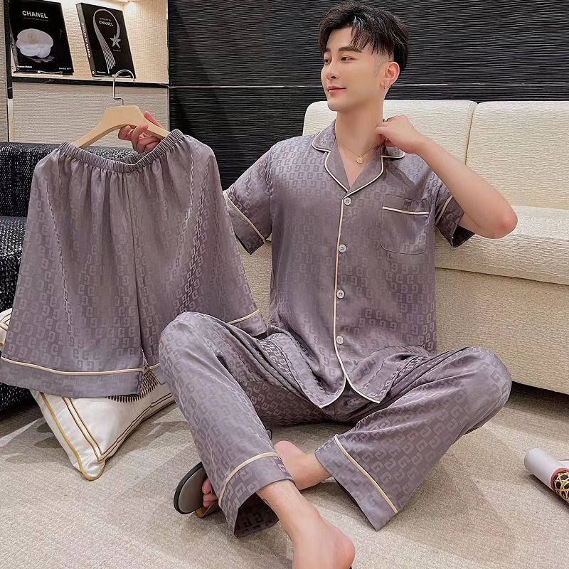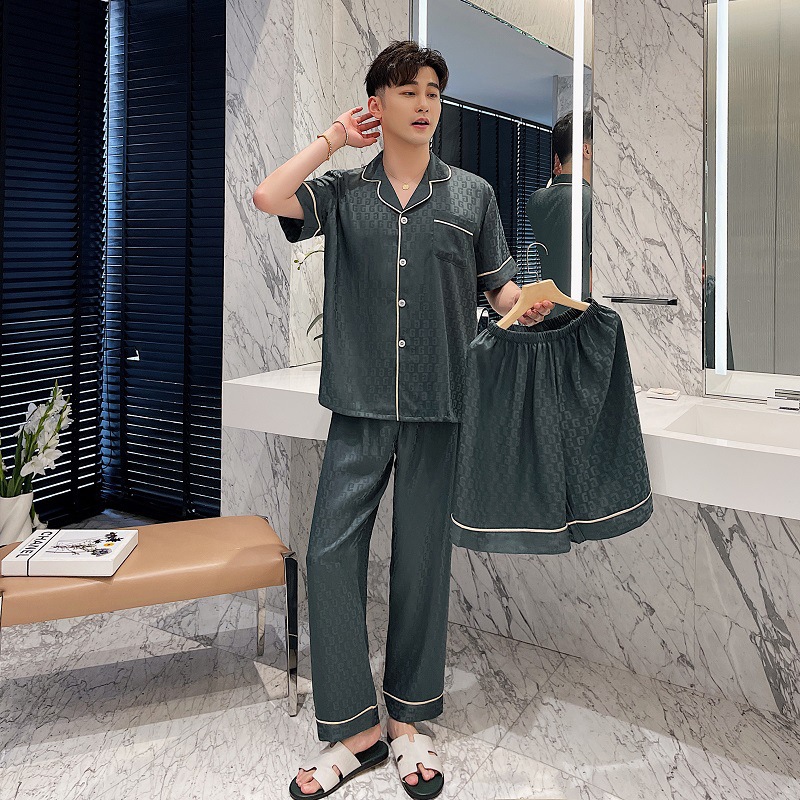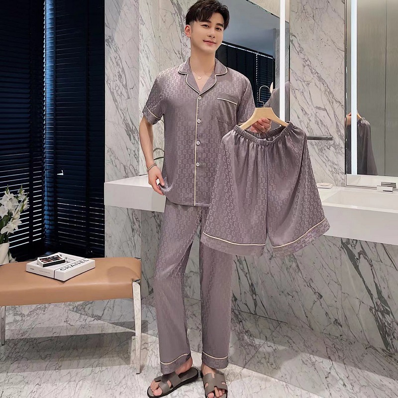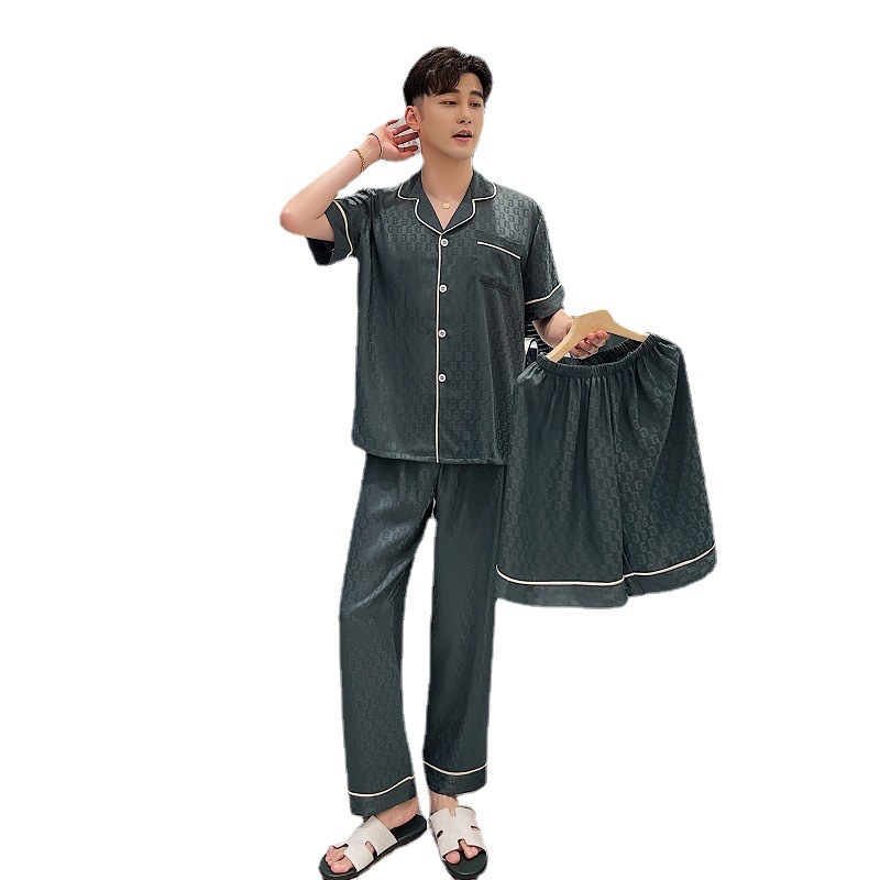 Мужские пижамы из ледяного шелка, комплект из трех предметов, мужской тонкий высококачественный цельный костюм, дропшиппинг, домашняя одежда из искусственного шелка, летняя одежда