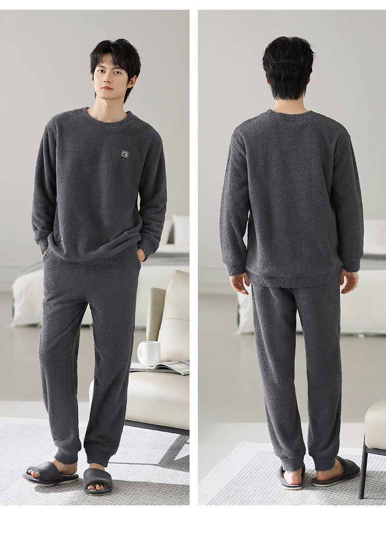 Зимняя мужская пижама из полувельвета, пуловер, простая и повседневная, можно носить на выход, осенью и зимой, домашняя одежда из полувельвета для подростков и мужчин.