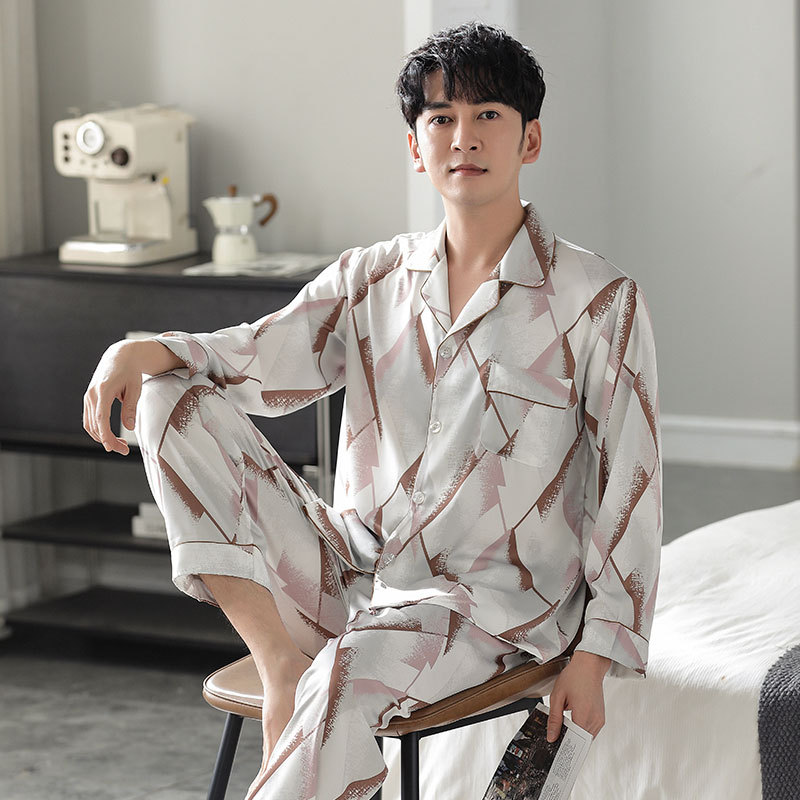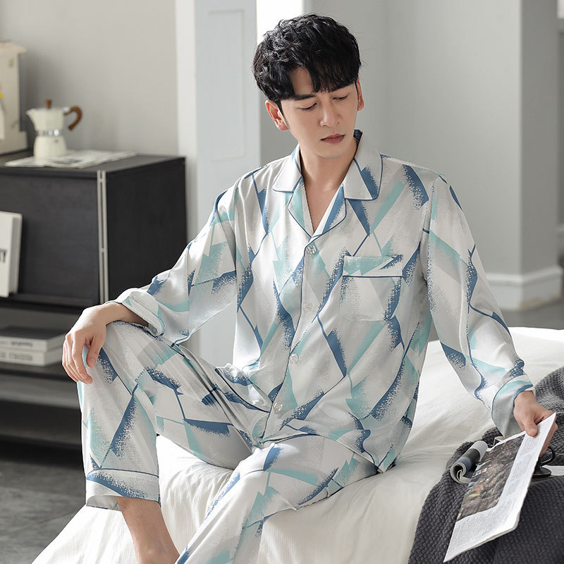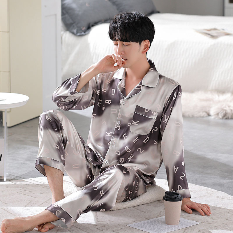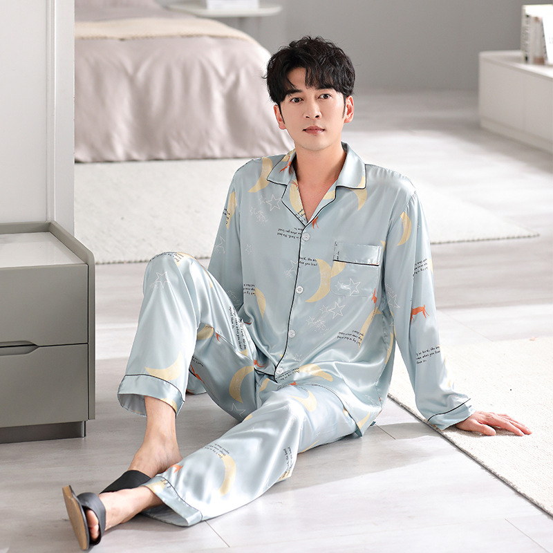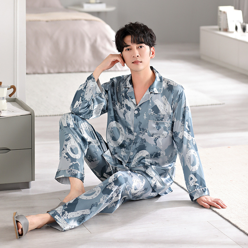 Главная страница > Han Yatong шелковая мужская пижама, новый весенне-летний костюм из искусственного шелка с принтом, осенняя Женская домашняя одежда с длинными рукавами